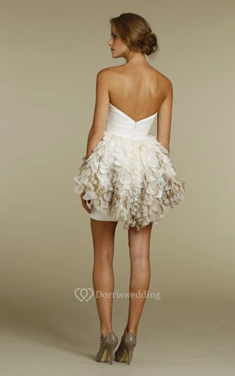 Noble Sweetheart Neckline Satin Mini Dress With Ombre Pleated Peplum