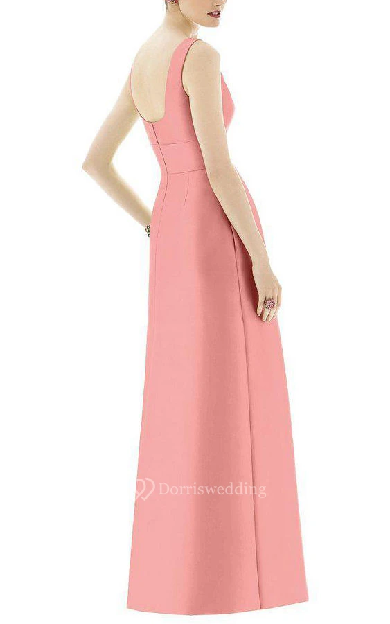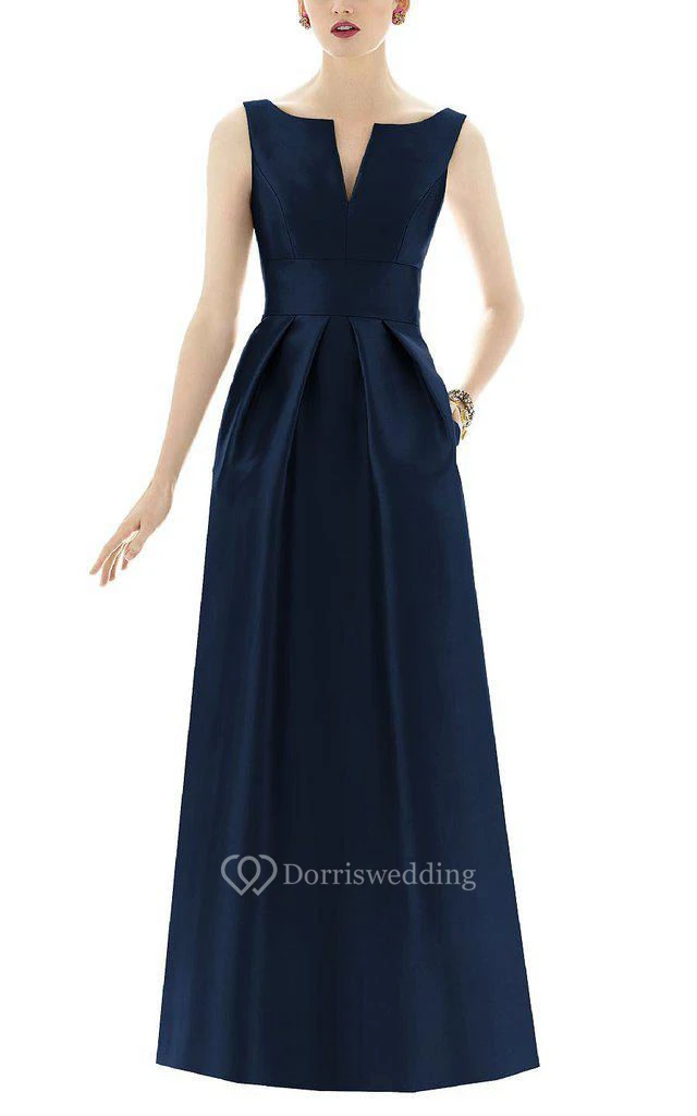 Notch Neck Satin Long Dress with Pleats