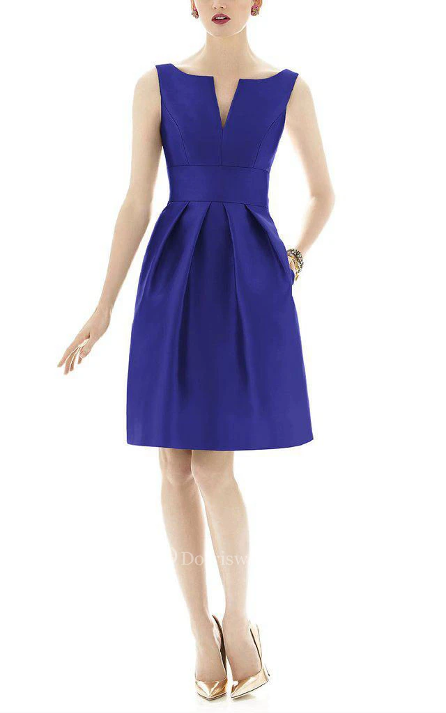 Notch Neck Satin Short Dress with Pleats