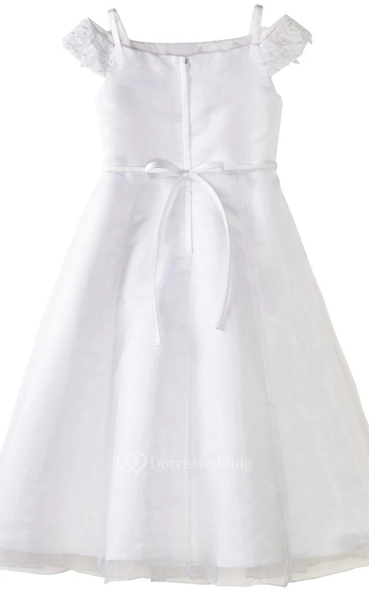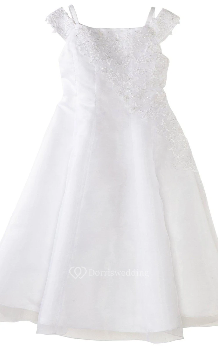 Off-shoulder A-line Appliqued Dress With Straps