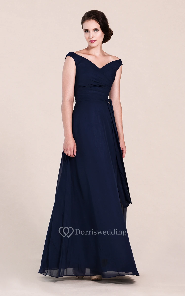 I have a pear shape and was not sure if the dress would look good on me. But it does. Its fit is flattering and comfortable. V neck and zippered back are such great additions. Length is just floor-touching for my height and the fit is perfect. Off-shoulder design adorns the simple style. Chiffon material is superior quality and does not look cheap at all.