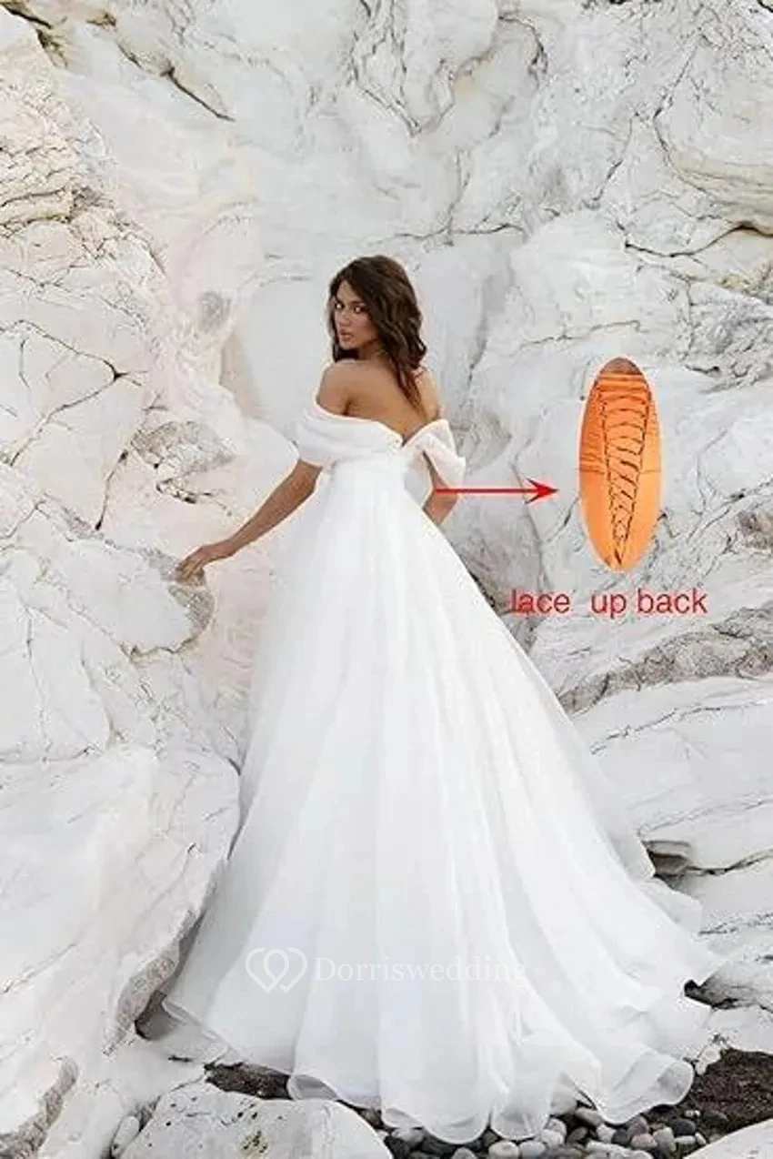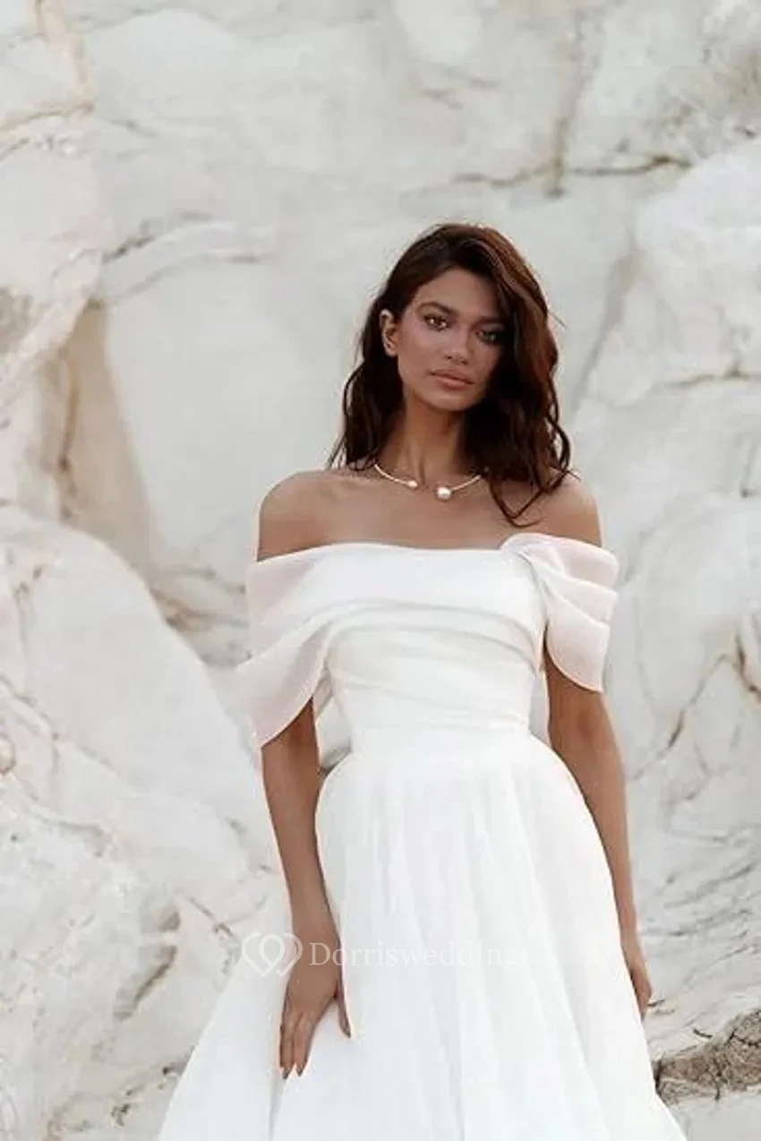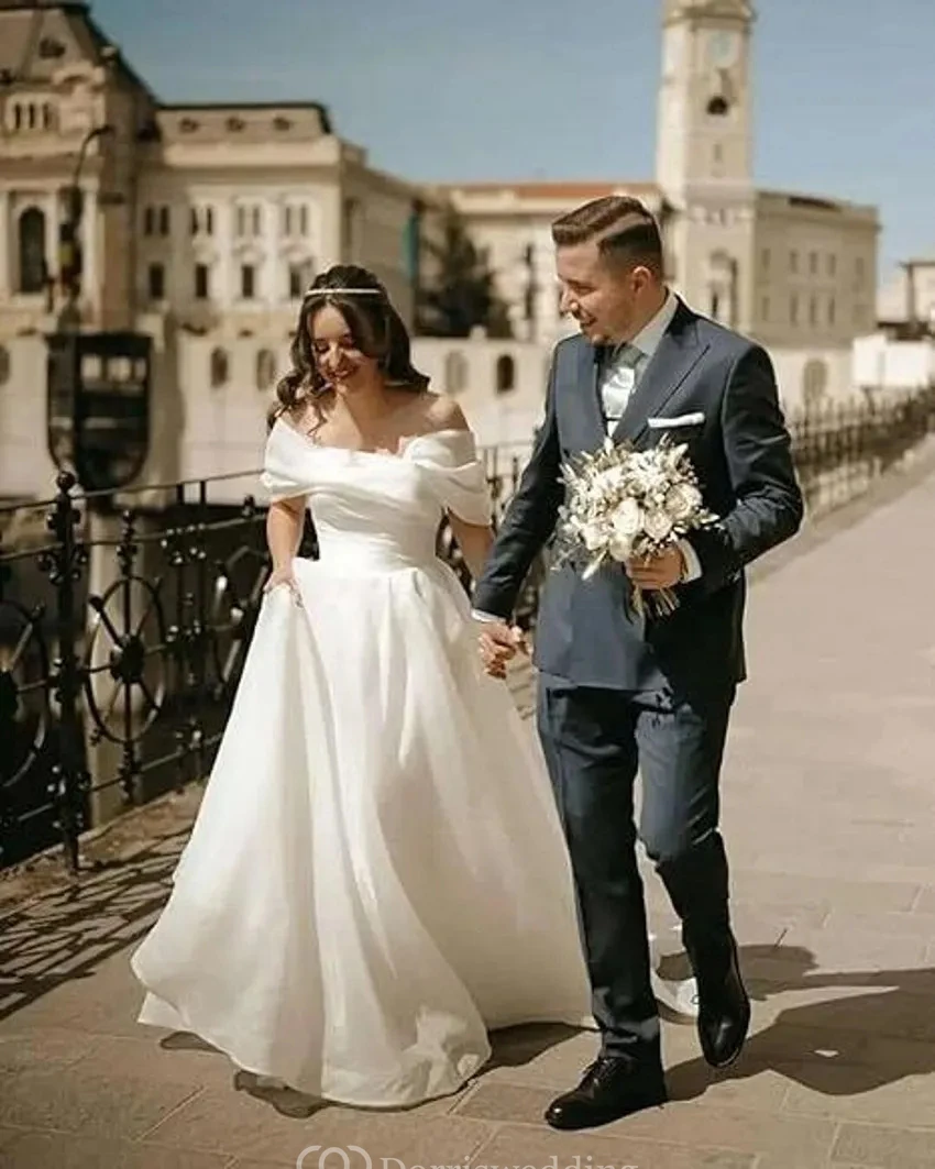Embrace timeless romance with this off-shoulder ball gown wedding dress, featuring a softly draped bodice and a voluminous skirt for a regal silhouette. The subtle train and sweetheart neckline add an elegant touch, perfect for a grand ceremony. ✨ Features: Off-Shoulder Neckline, Ball Gown Silhouette, Soft Draped Bodice, Floor-Length Hem, Subtle Train. A classic choice for a truly unforgettable entrance.