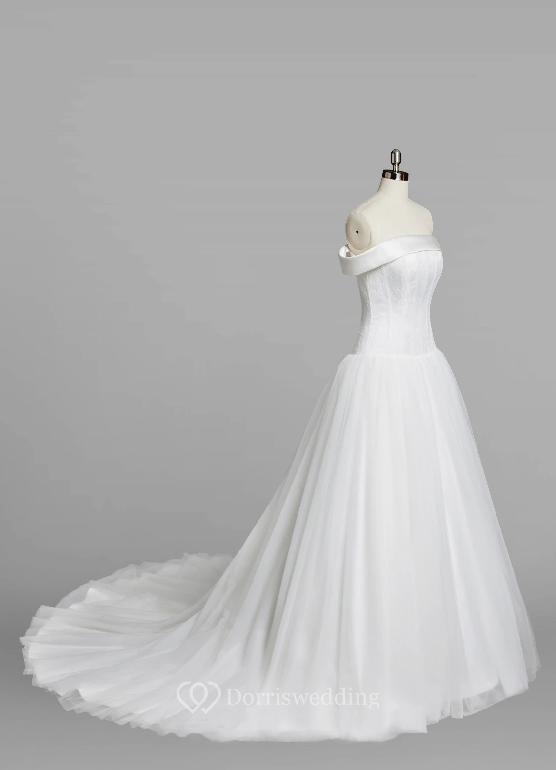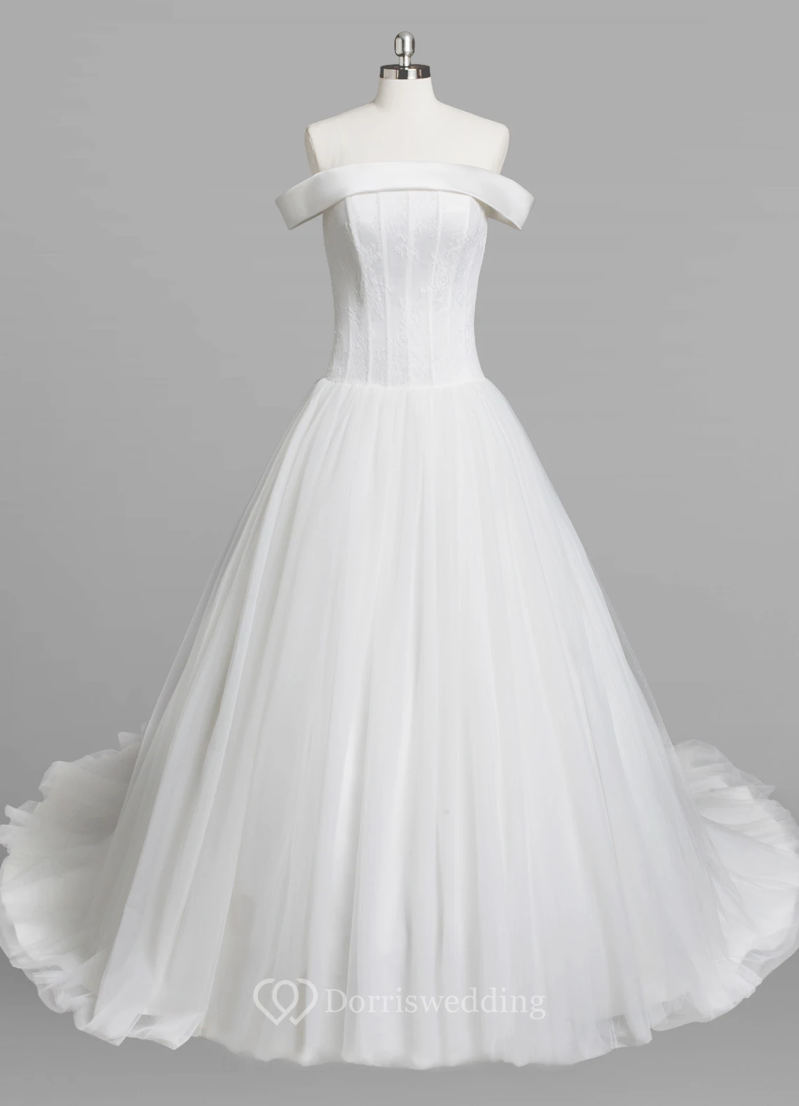 Off-Shoulder Chiffon Ball Gown With Corset Lace Bodice