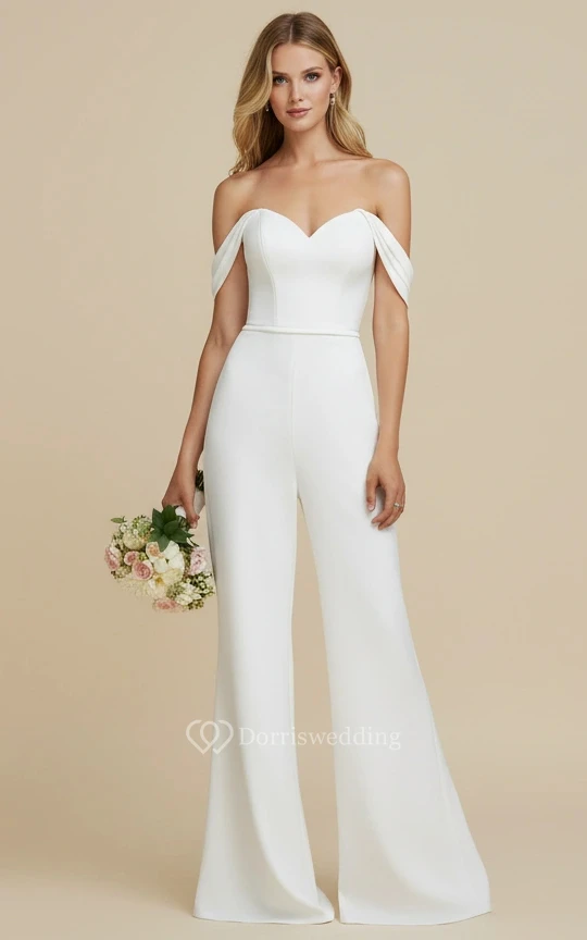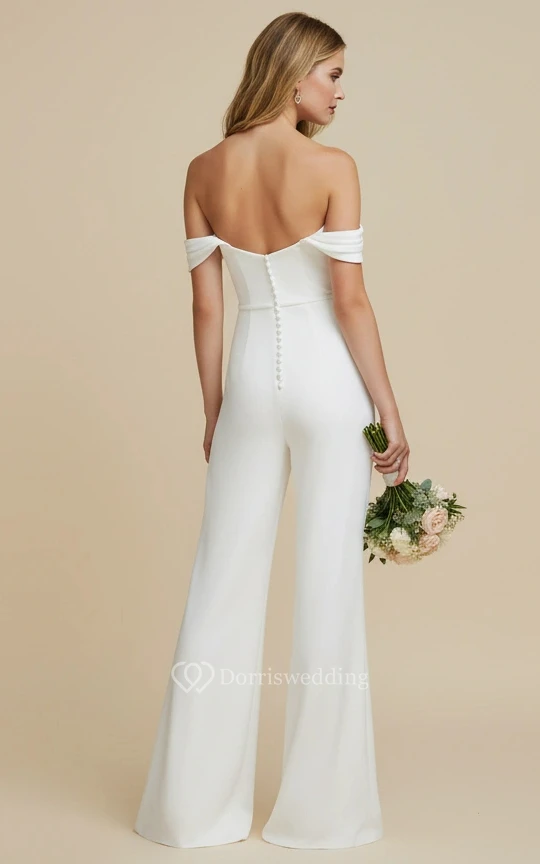 Off-Shoulder Ruffle Wide Leg Wedding Jumpsuit