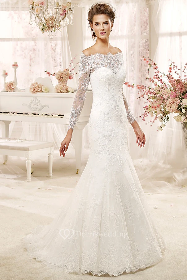 Off-shoulder Sheath Wedding Dress Styles with Long Sleeves and Illusive Design