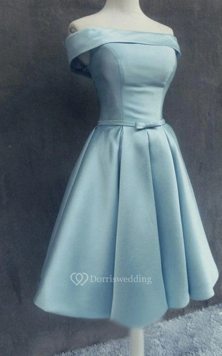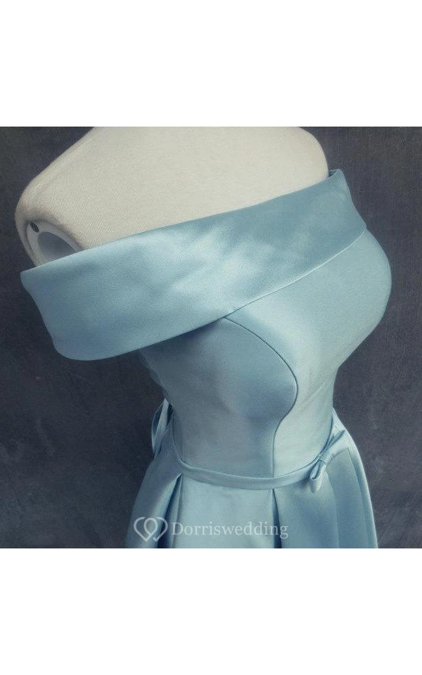 Off-shoulder Short Satin Dress With Bow