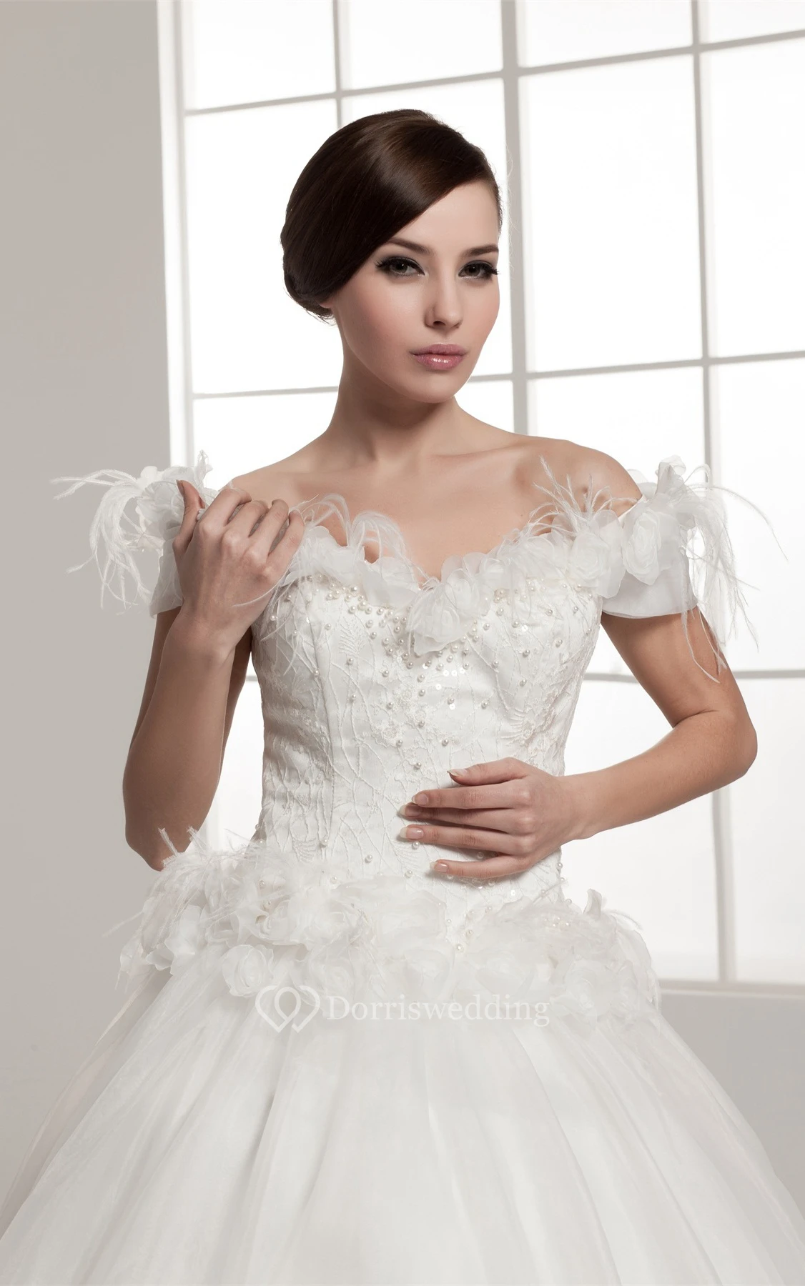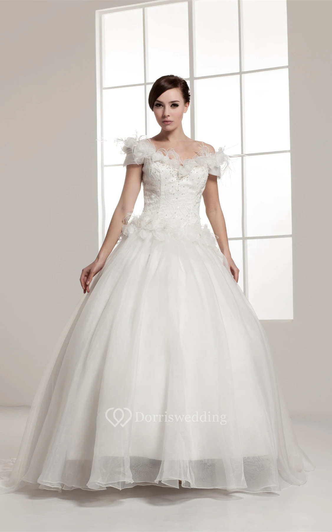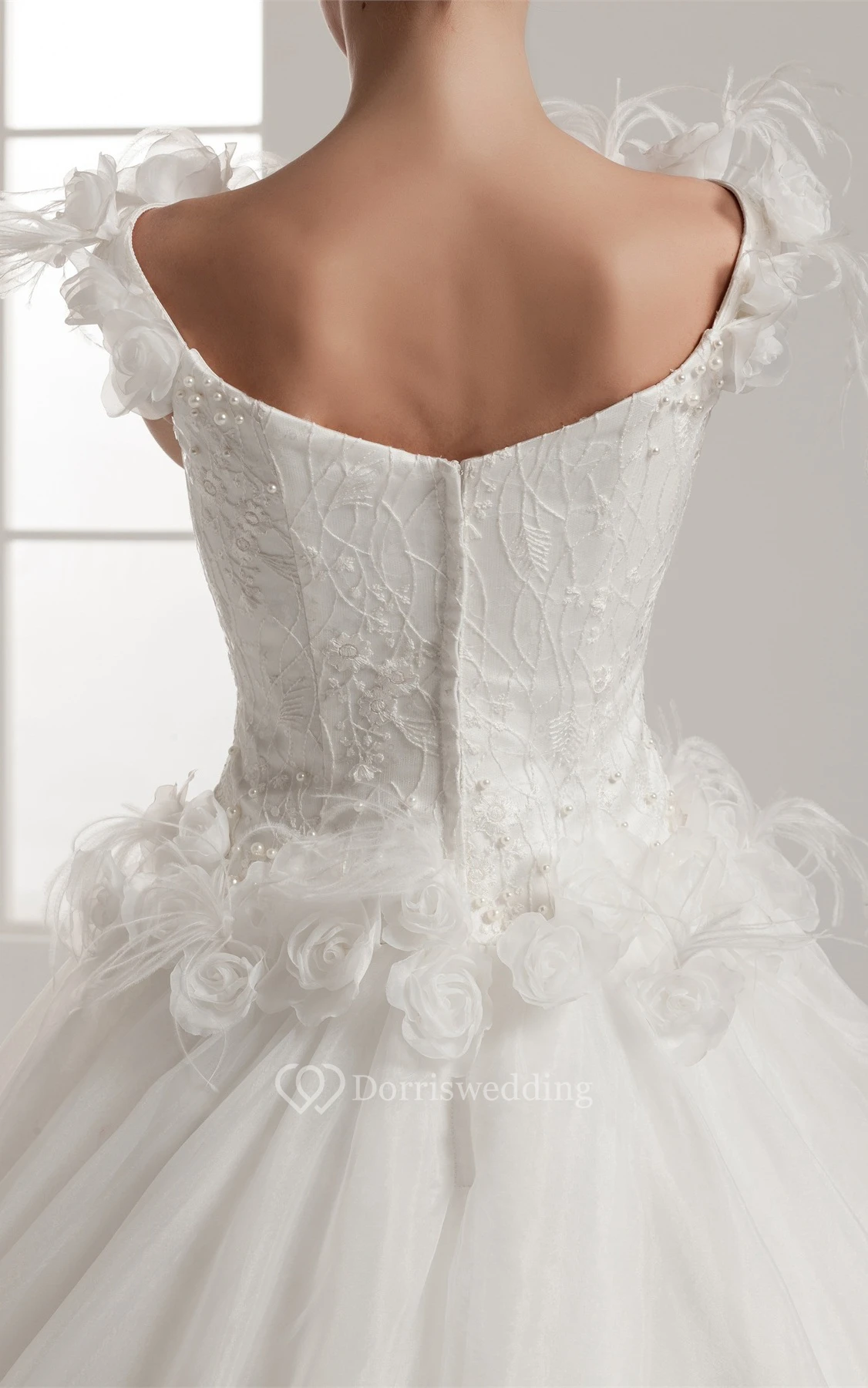Off-The-Shoulder A-Line Floral Waist and Ball-Gown With Beading