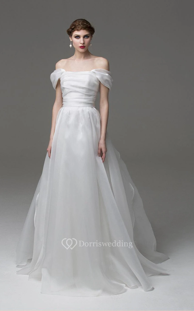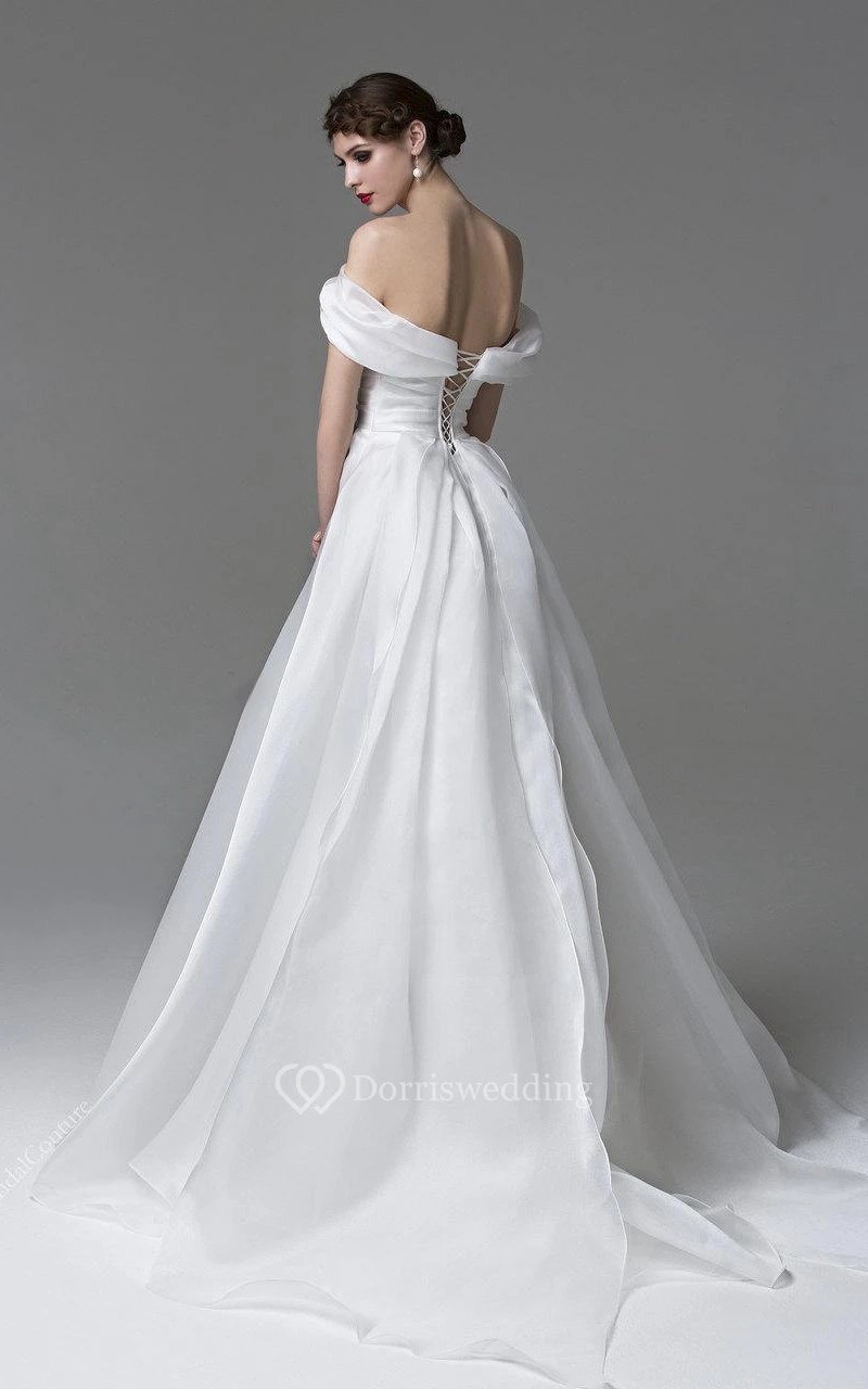 Off-The-Shoulder A-Line Organza Dress With Lace-Up Back and Ruching