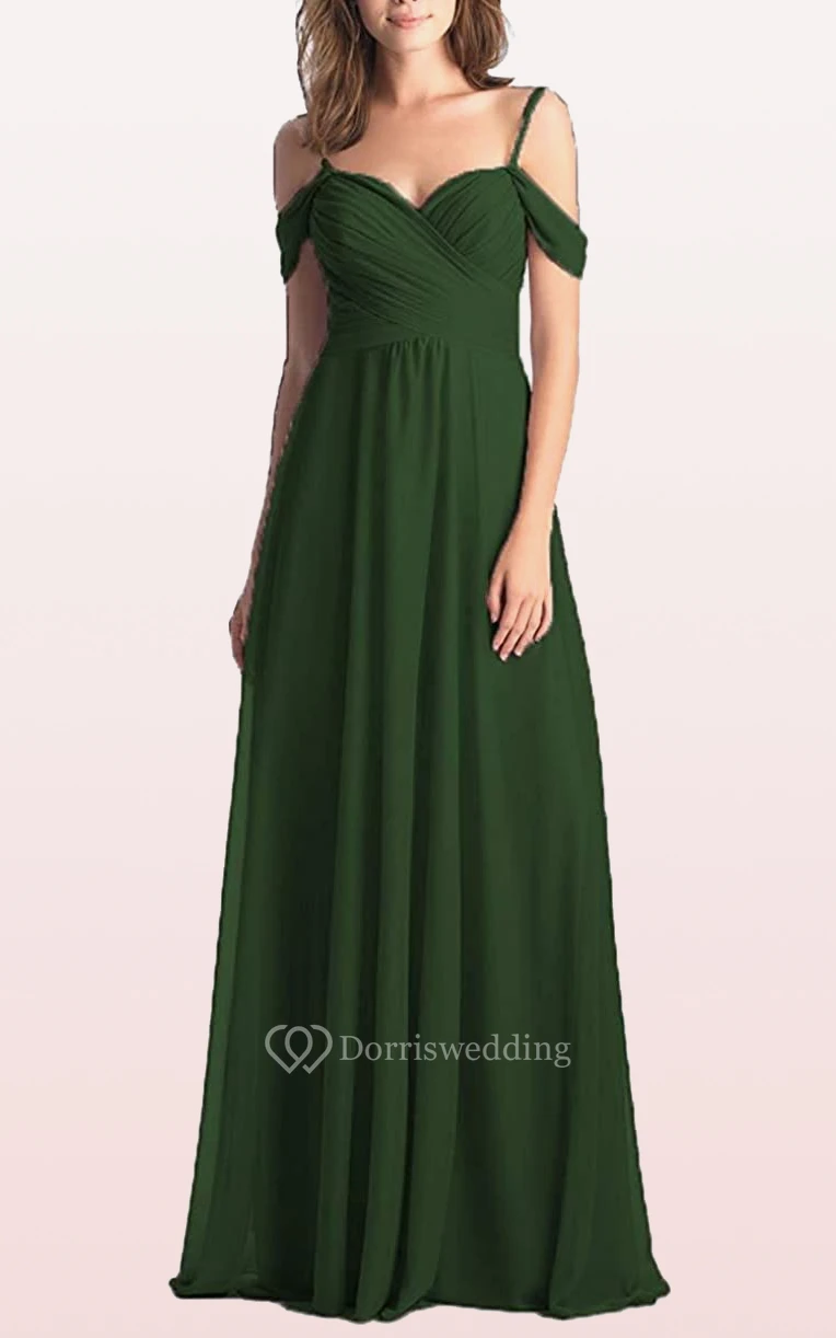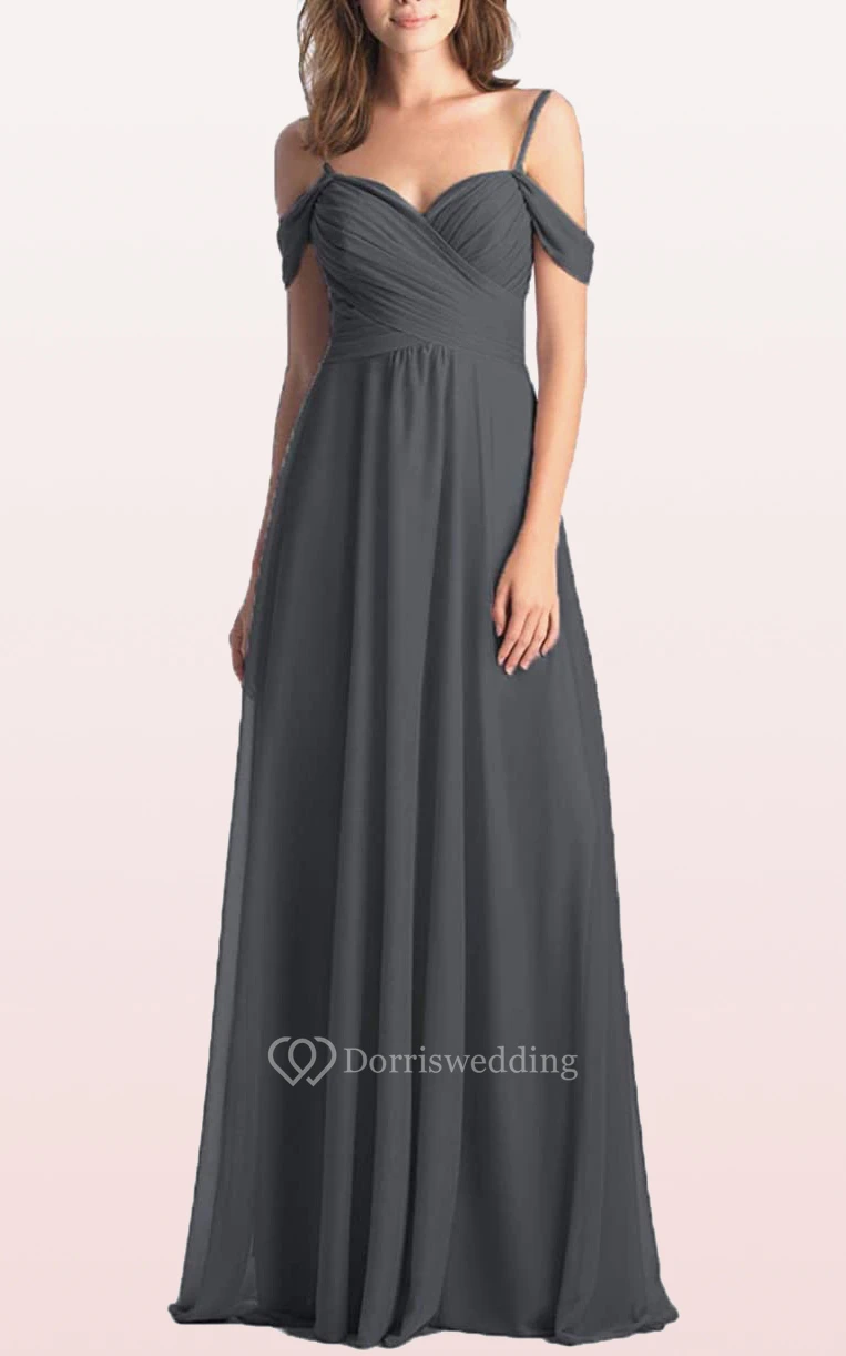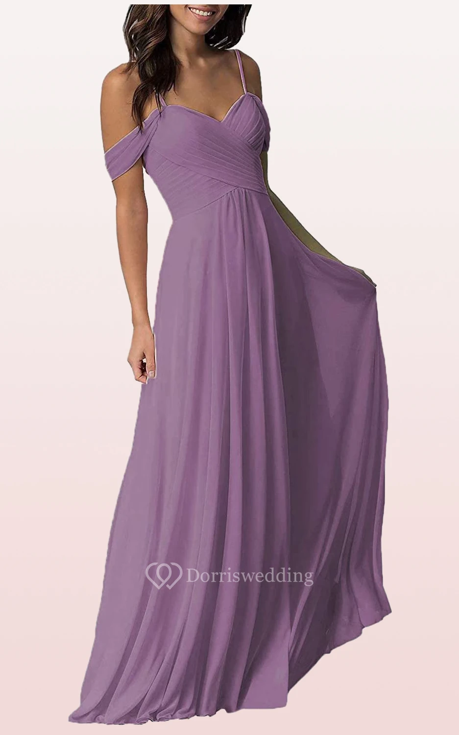 Off-the-shoulder A Line Sleeveless Floor-length Chiffon Bridesmaid Dress With Criss Cross