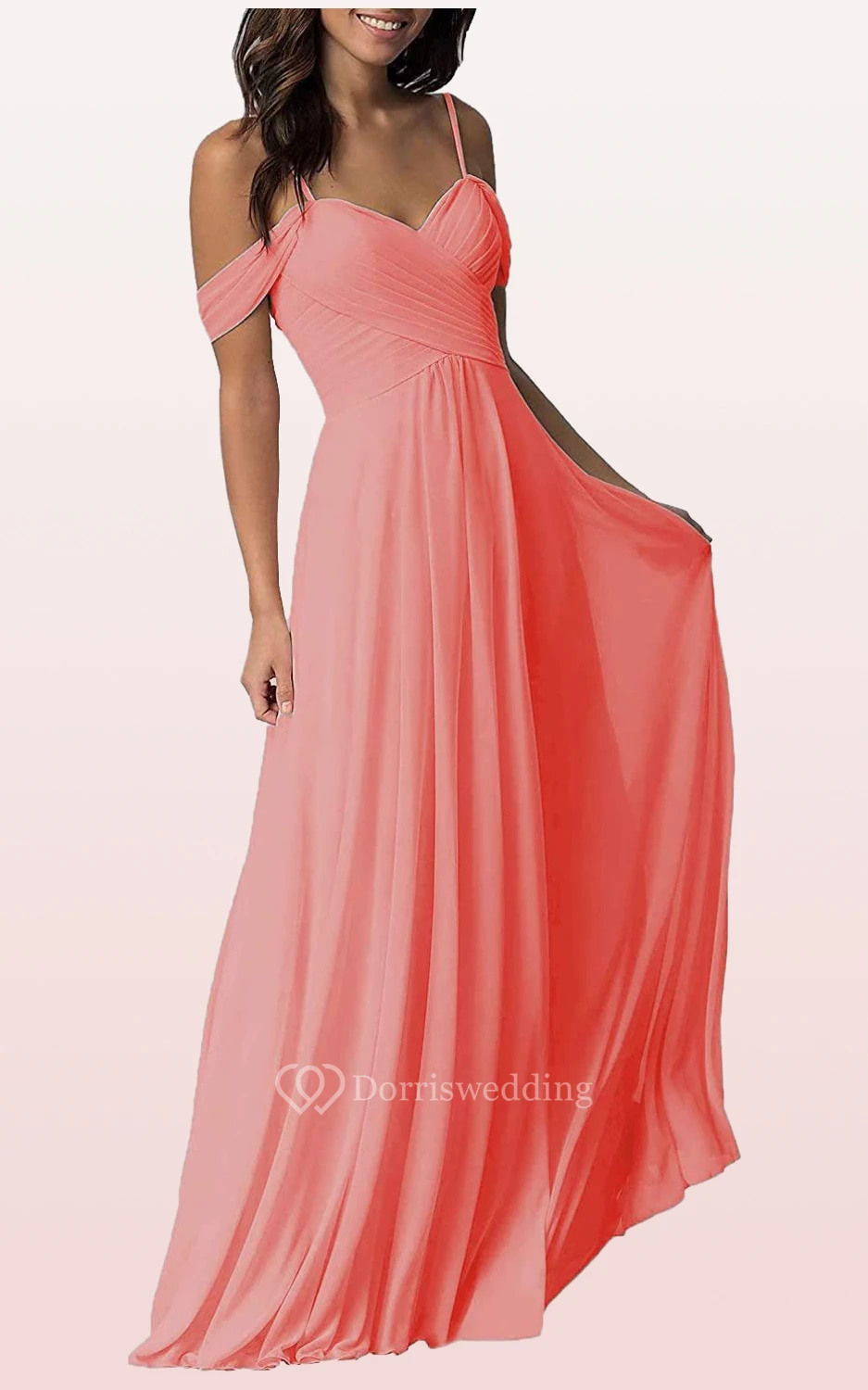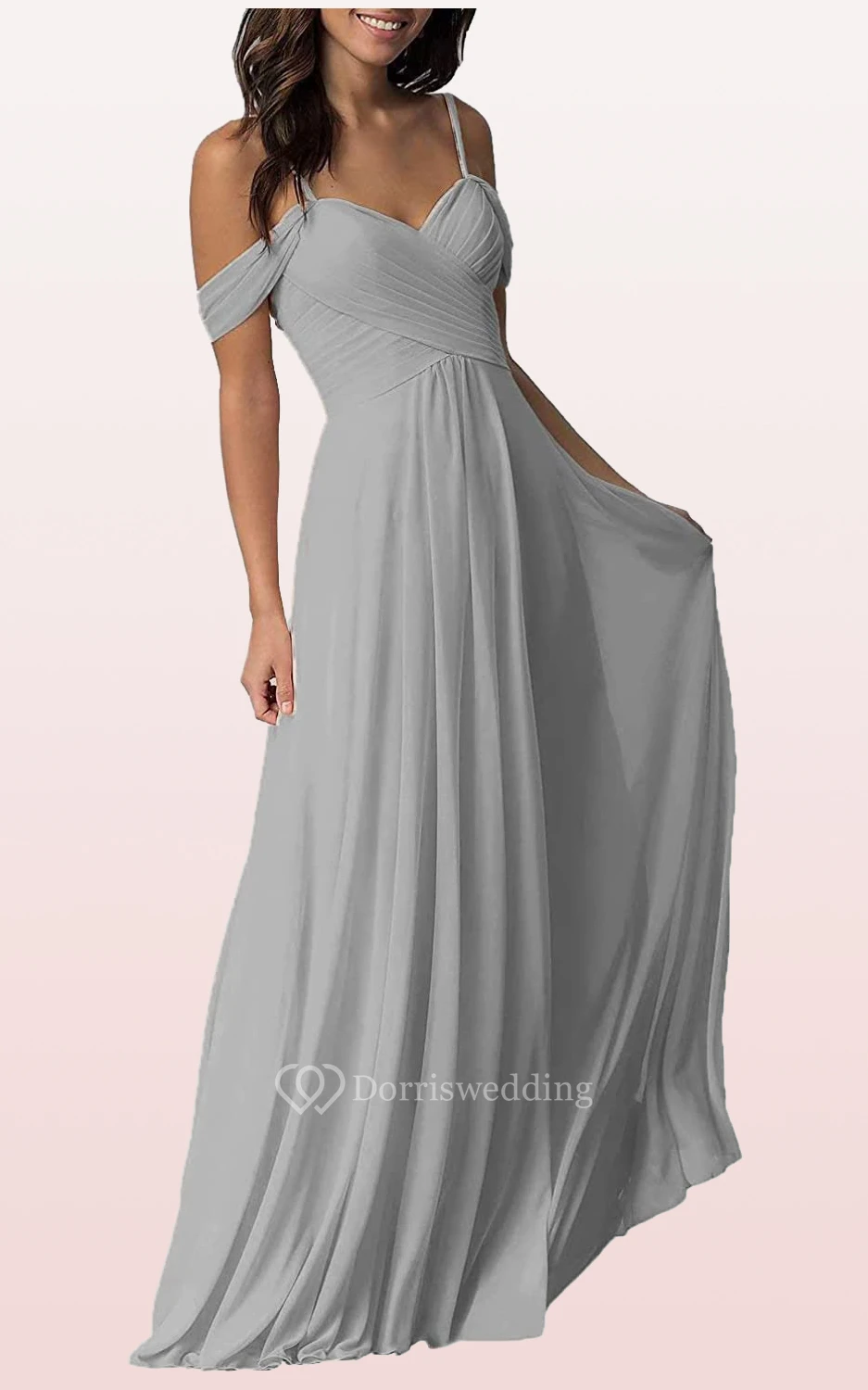 Off-the-shoulder A Line Sleeveless Floor-length Chiffon Bridesmaid Dress With Ruching