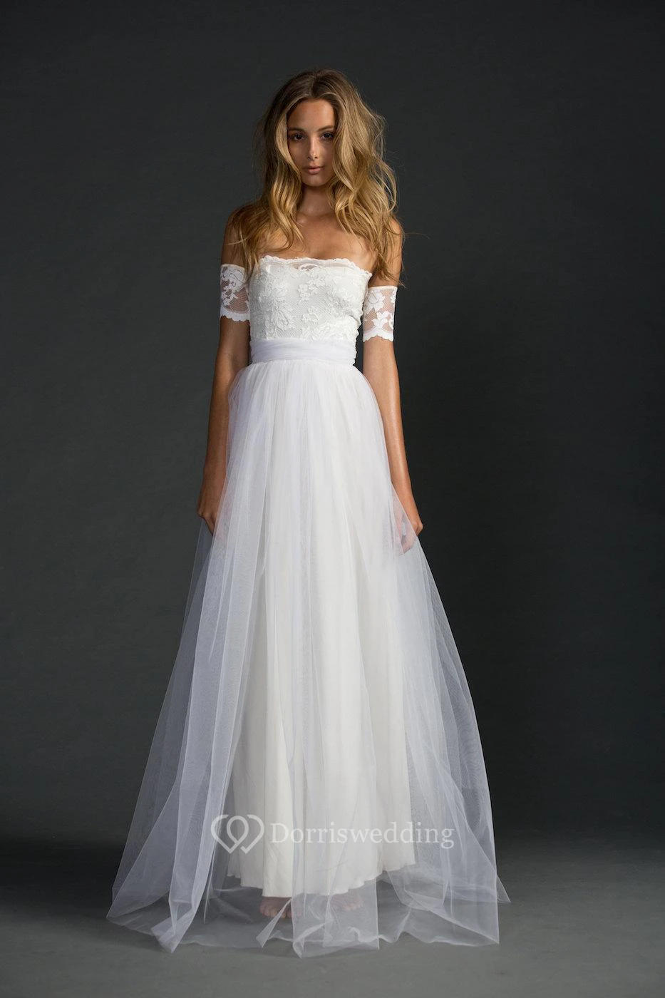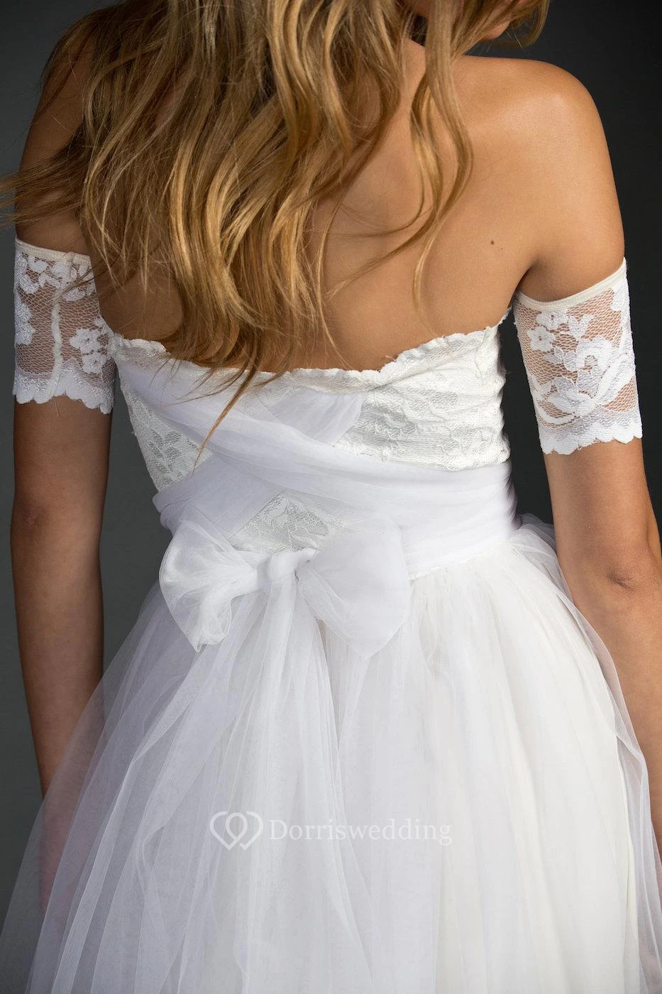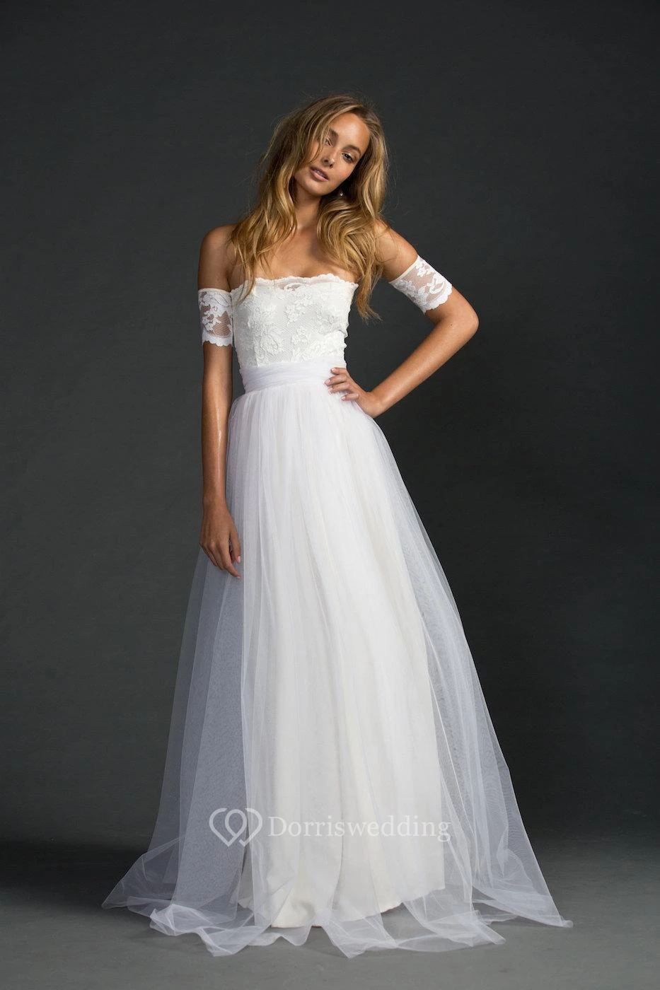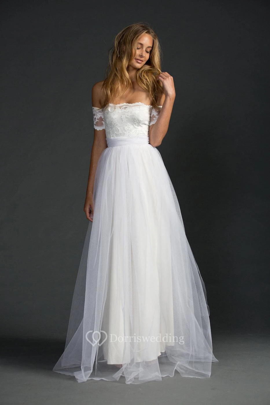 Off-The-Shoulder A-Line Tulle Dress With Lace Bodice