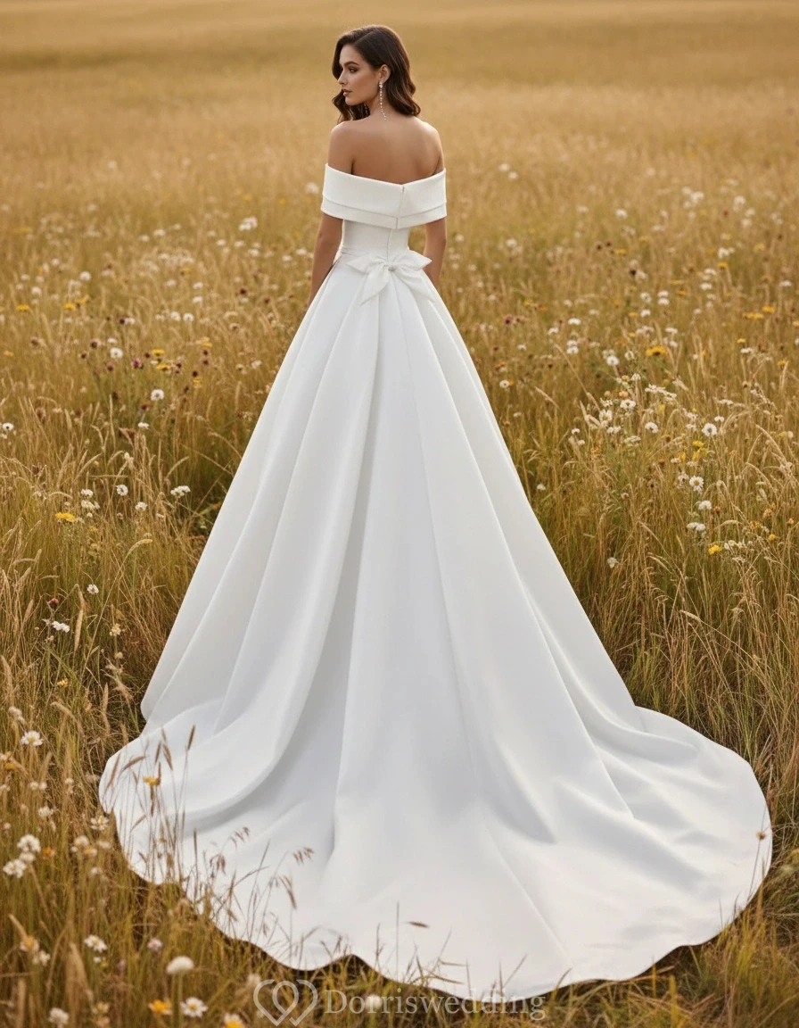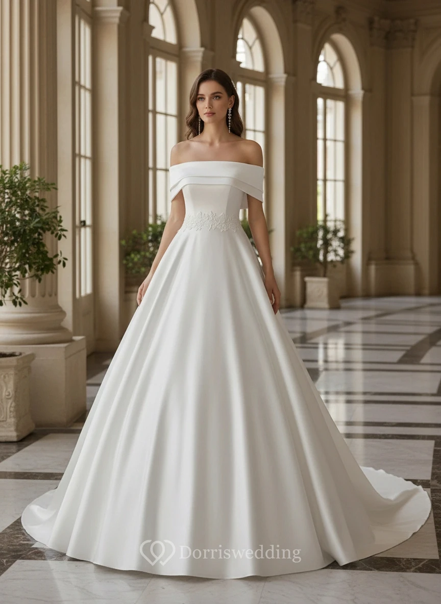Off-the-Shoulder Ball Gown Satin Wedding Dress