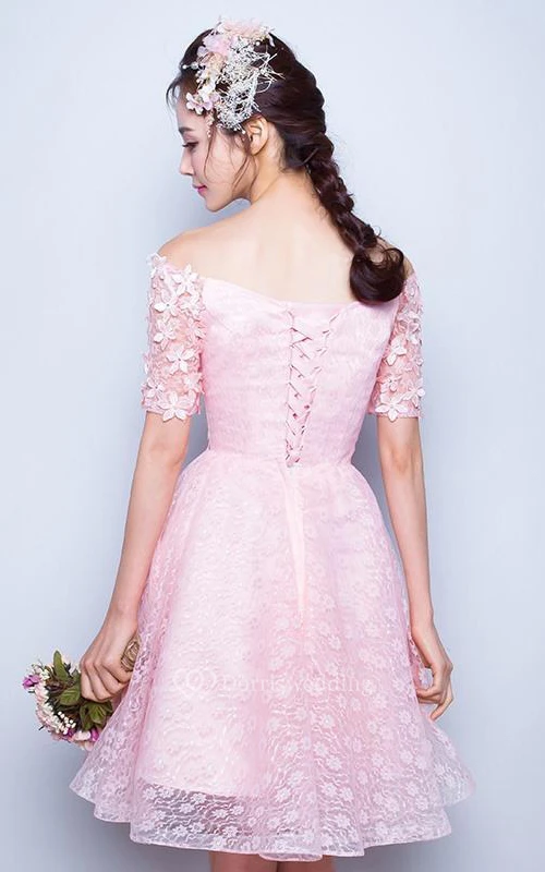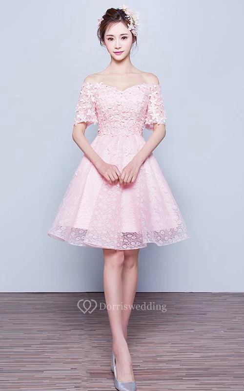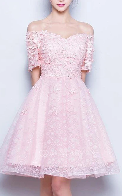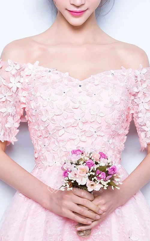 Off-The-Shoulder Beaded Flowers Pink Prom Dress