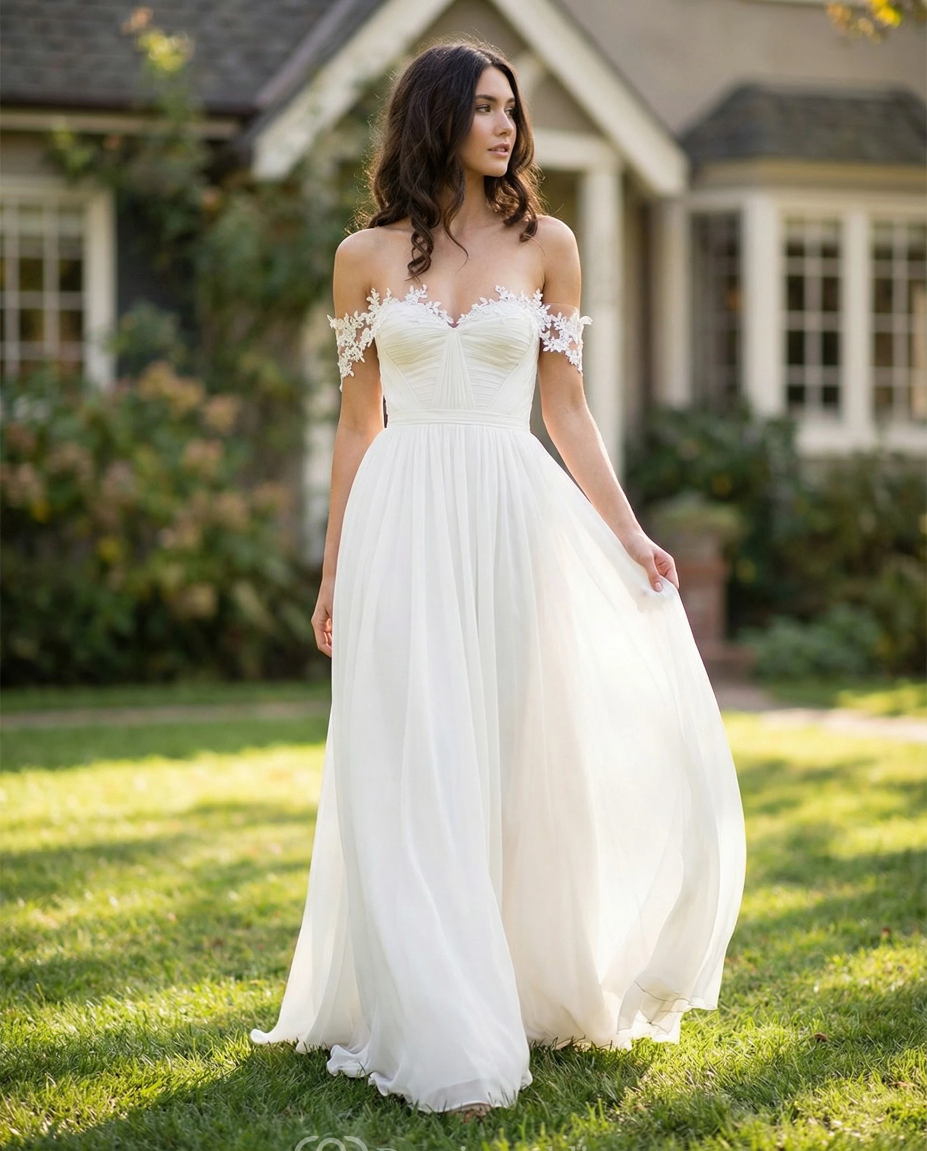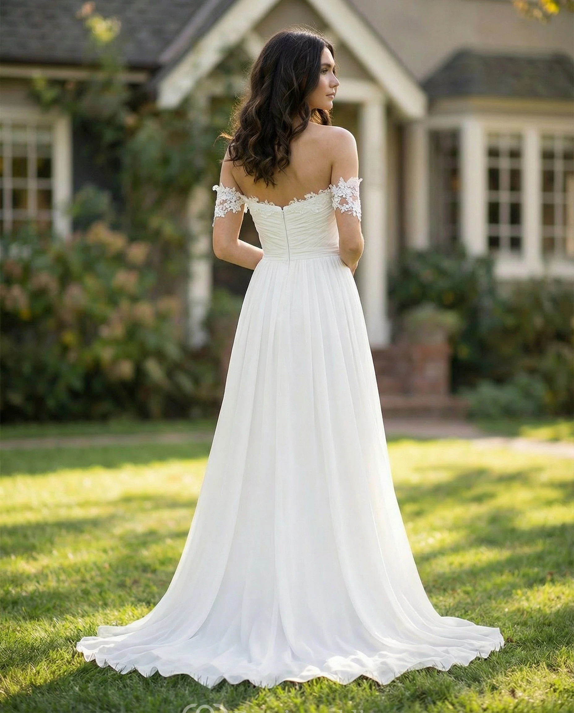 Off-The-Shoulder Chiffon Beach Wedding Gown