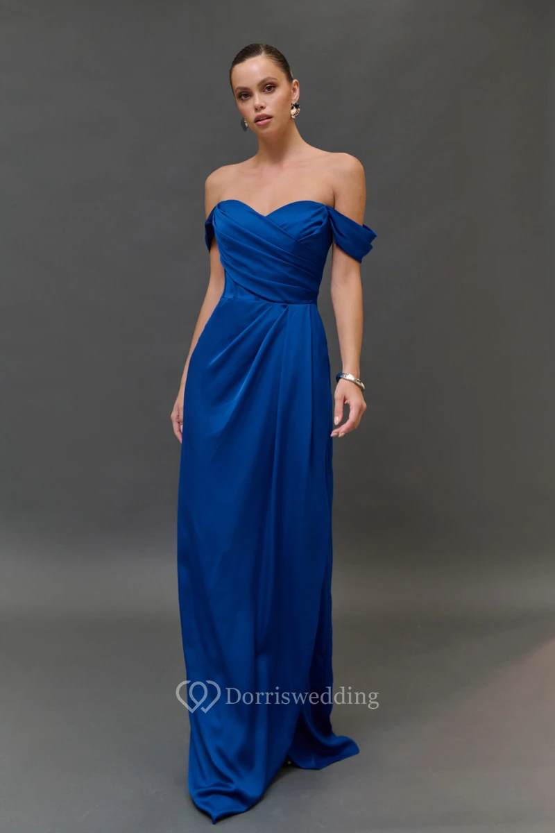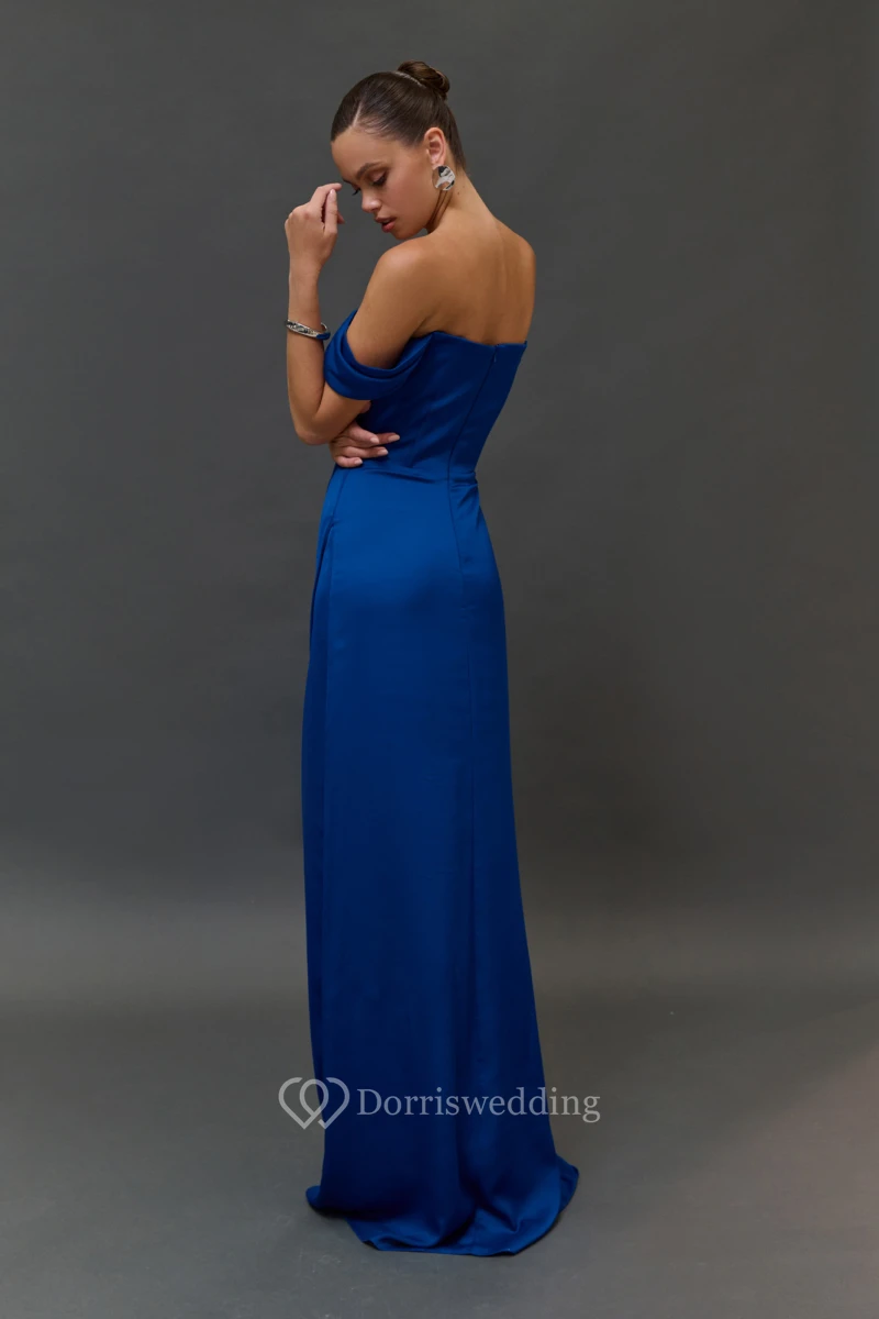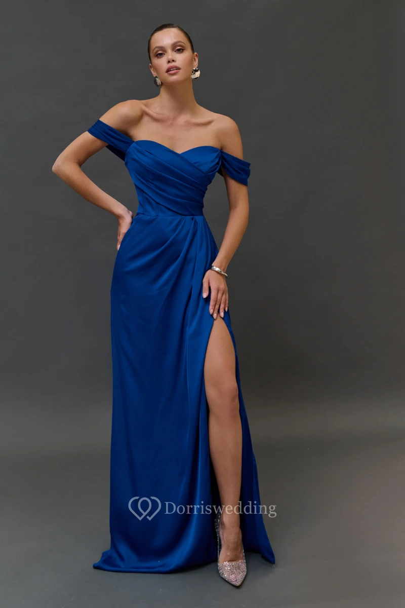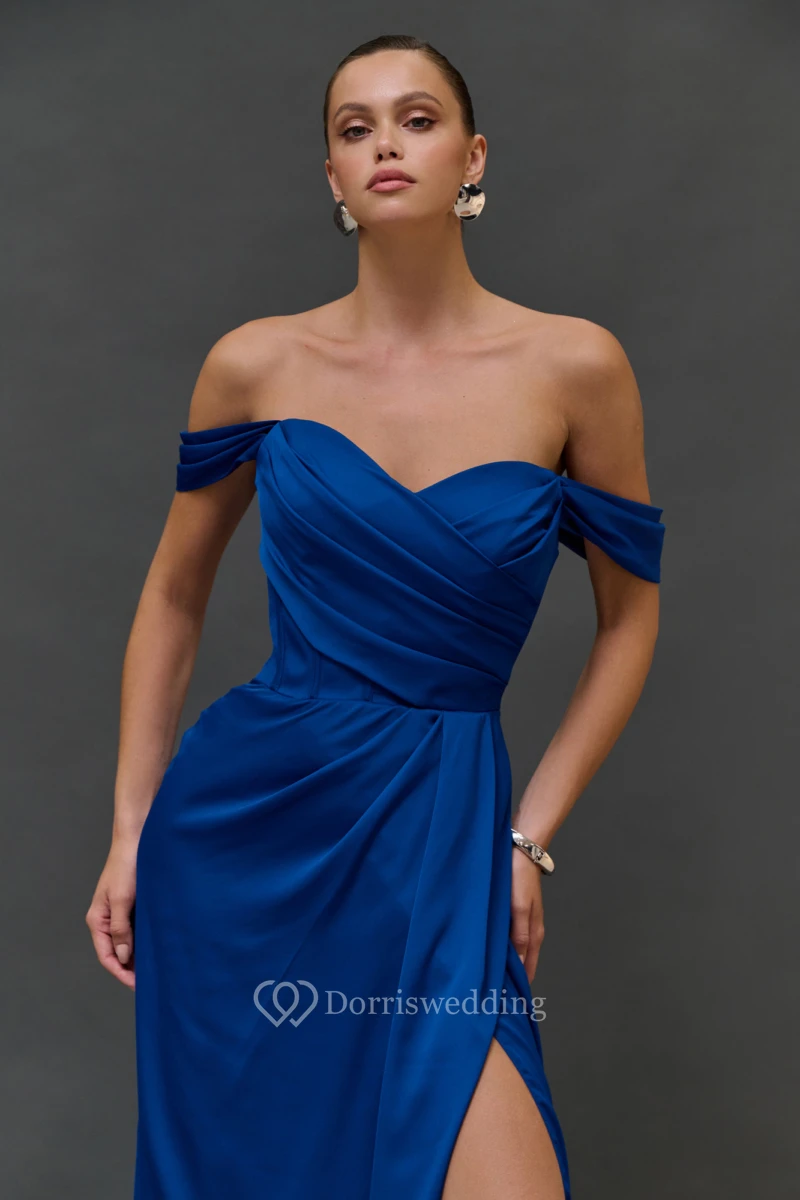 Off-the-shoulder Criss-cross Sheath Split Blue Dress