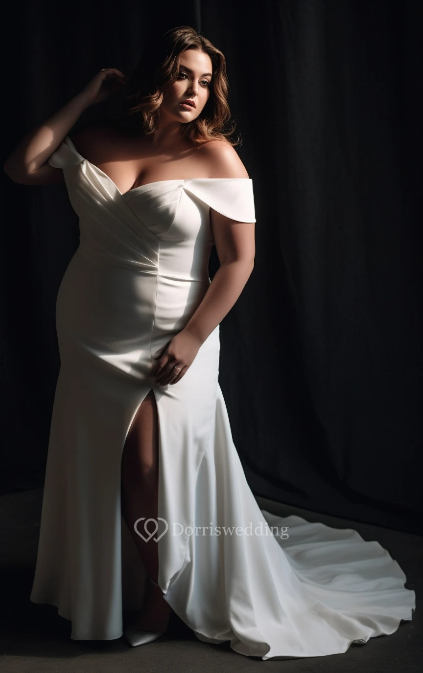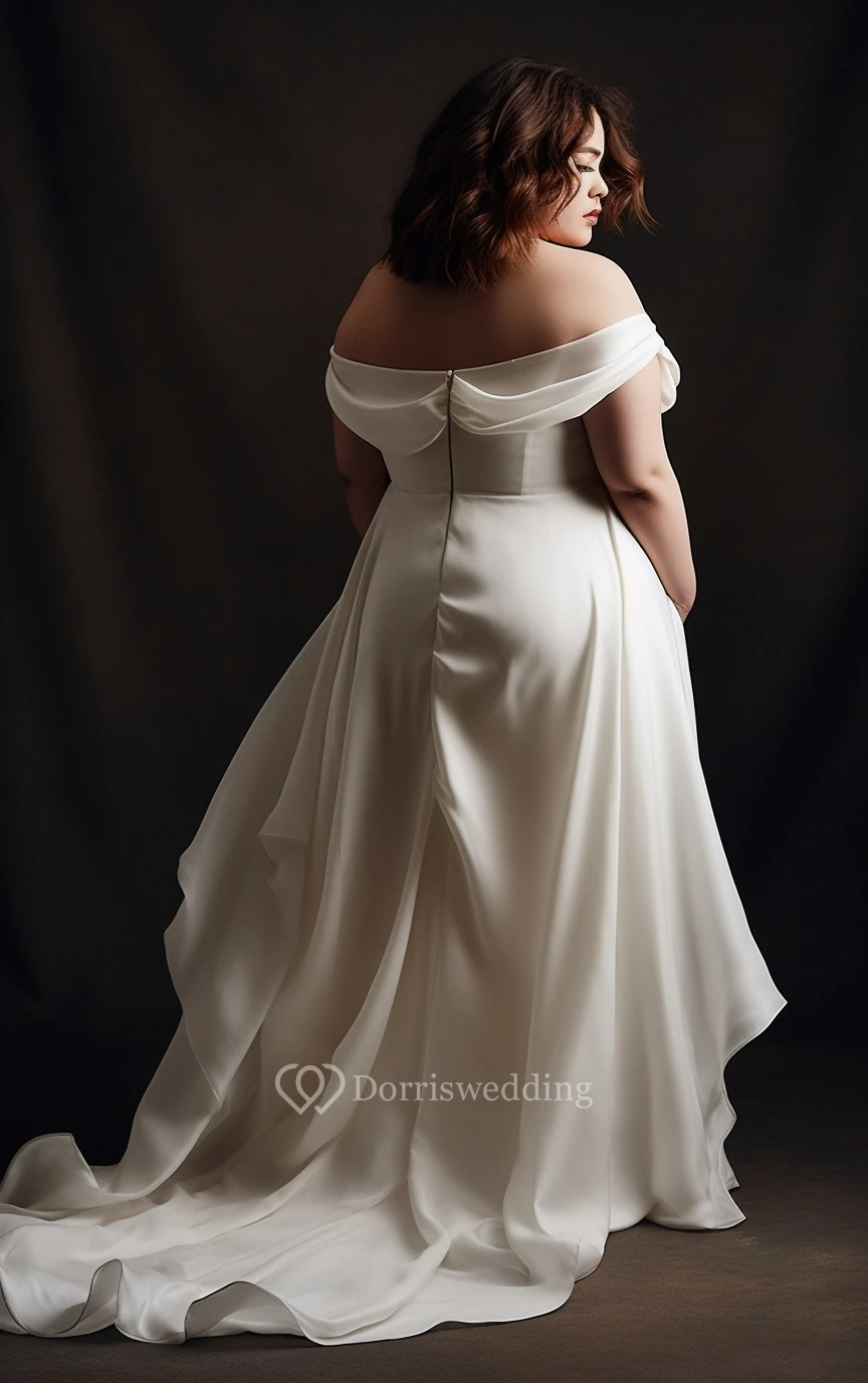 Off-the-shoulder Front Split Plus Size Simple Chiffon Wedding Dress