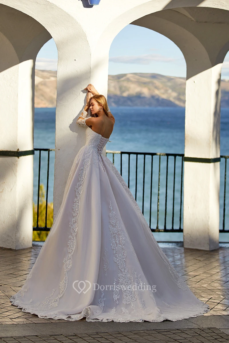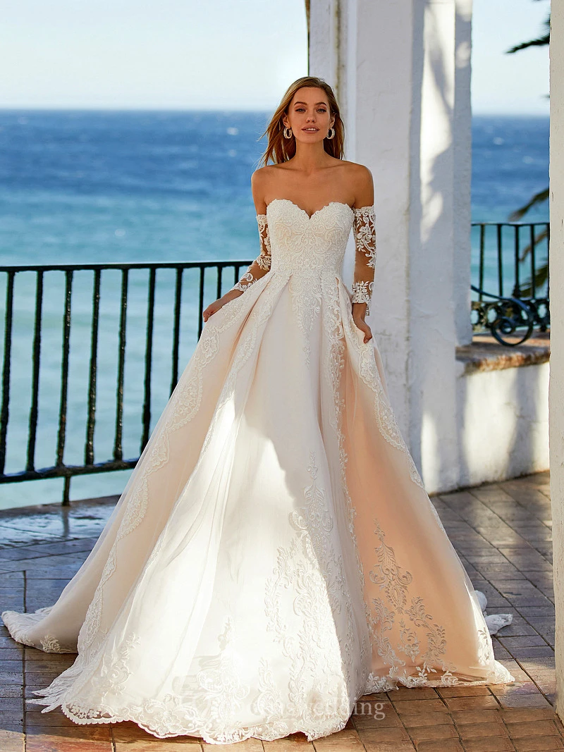 Off-the-shoulder Illusion Long Sleeve Ball Gown Lace Wedding Dress