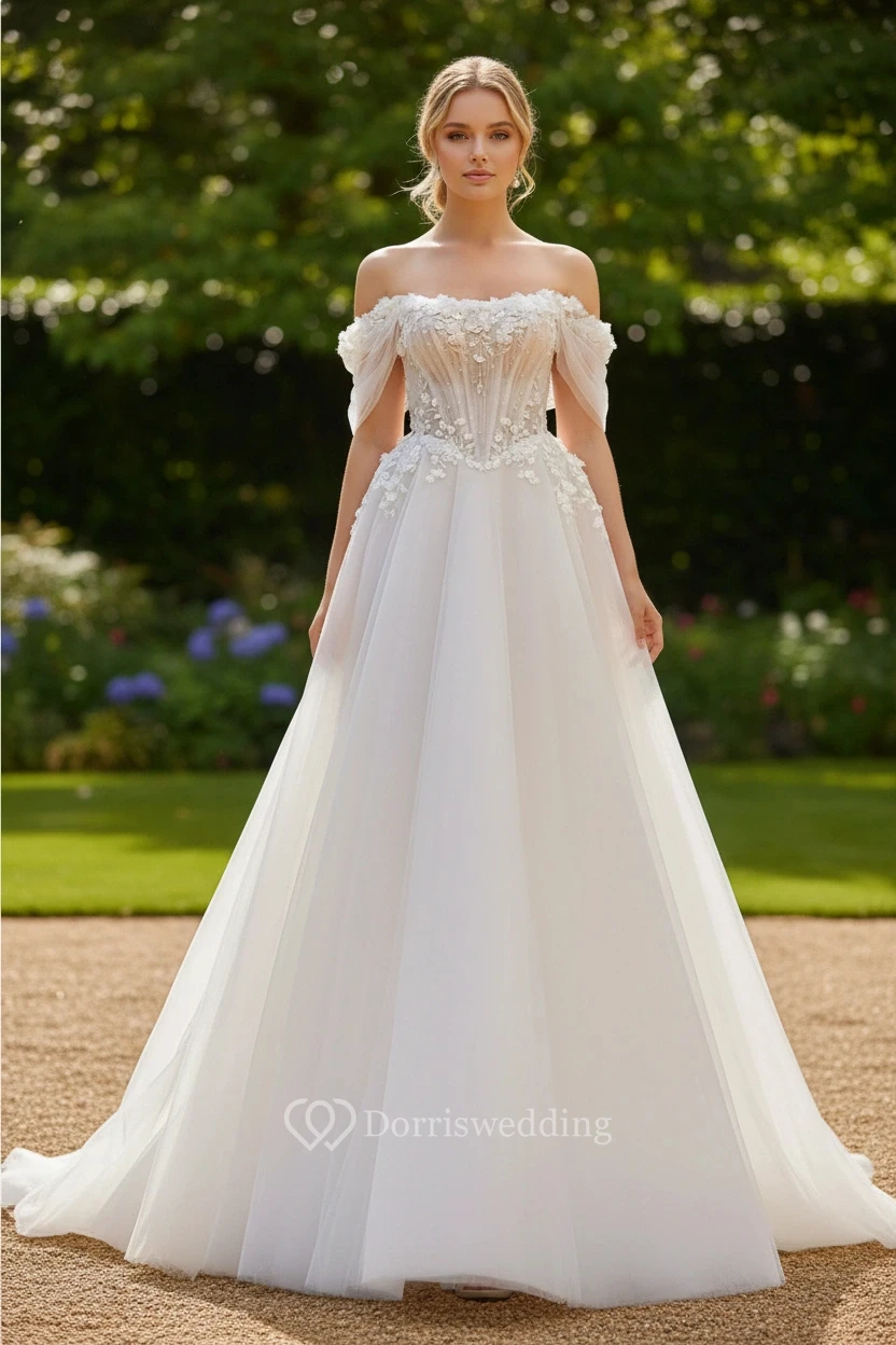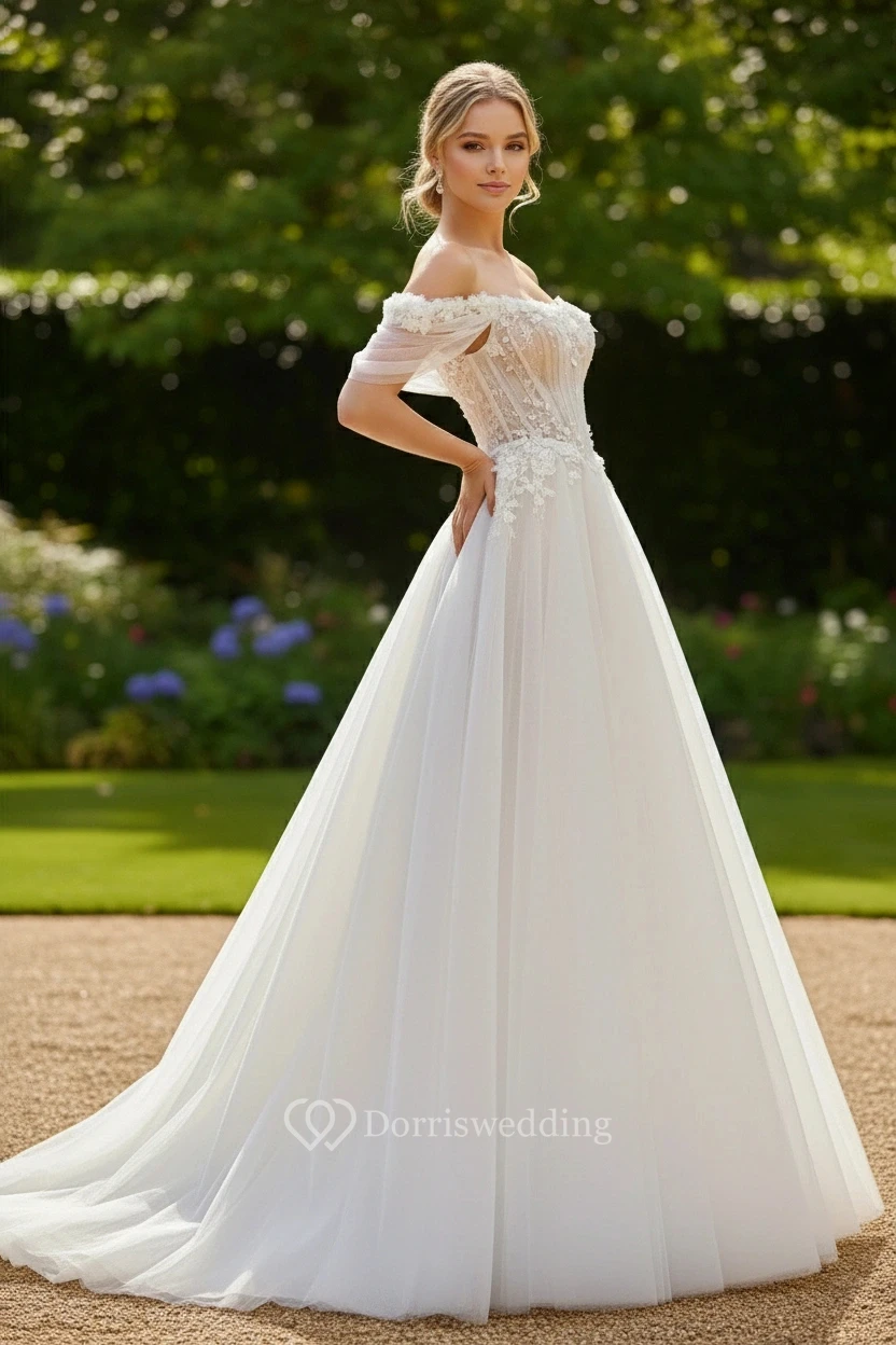 Off-the-Shoulder Lace A-line Ball Gown Wedding Dress
