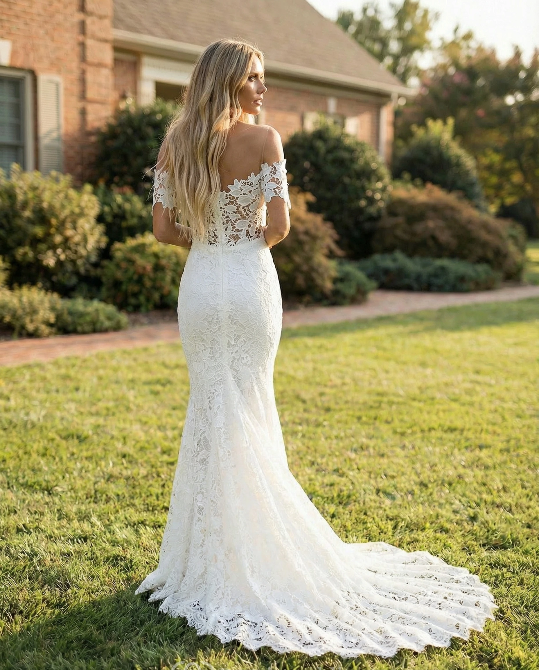 I absolutely loved wearing this dress. The short sleeves are so pretty and the lace is very flattering. The mermaid silhouette moves beautifully. I felt so romantic and special on my wedding day. It’s a great choice for any bride who wants a classic and feminine look. The quality of the lace is excellent and it fits perfectly.