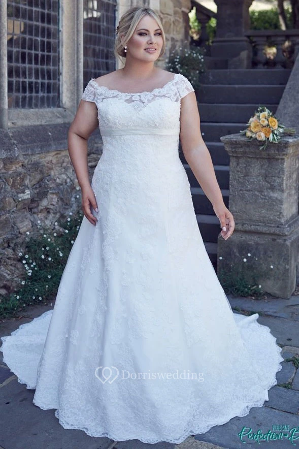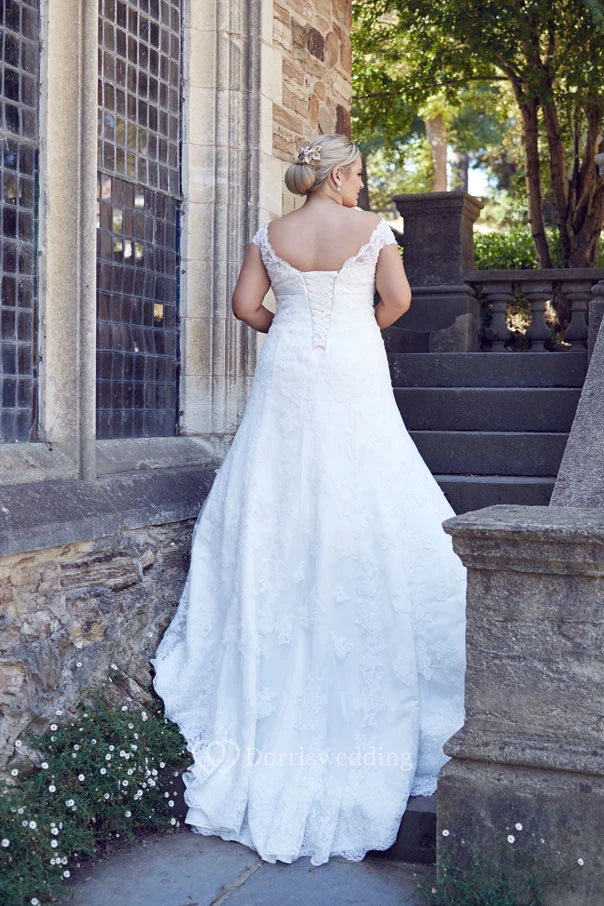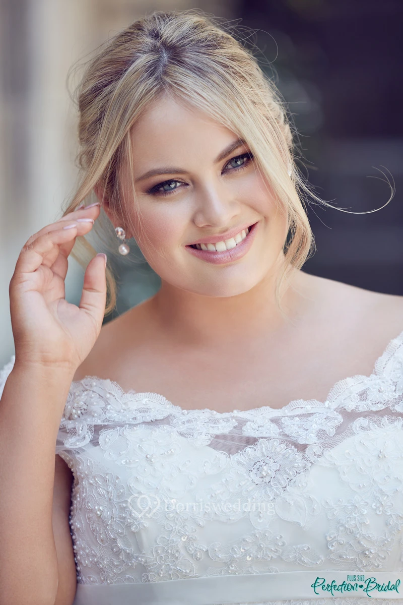 Off-The-Shoulder Lace Plus Size Wedding Dress With Lace Up