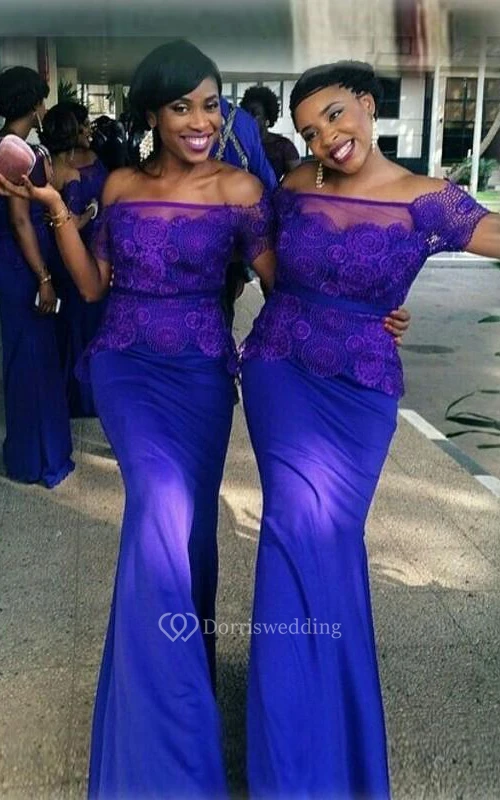 Off-the-shoulder Long Chiffon Tulle Lace Dress