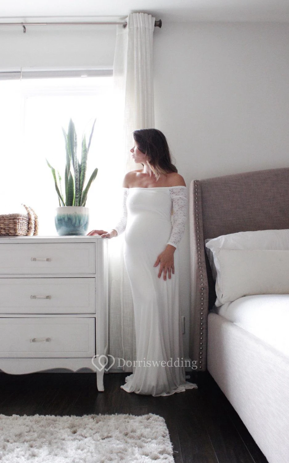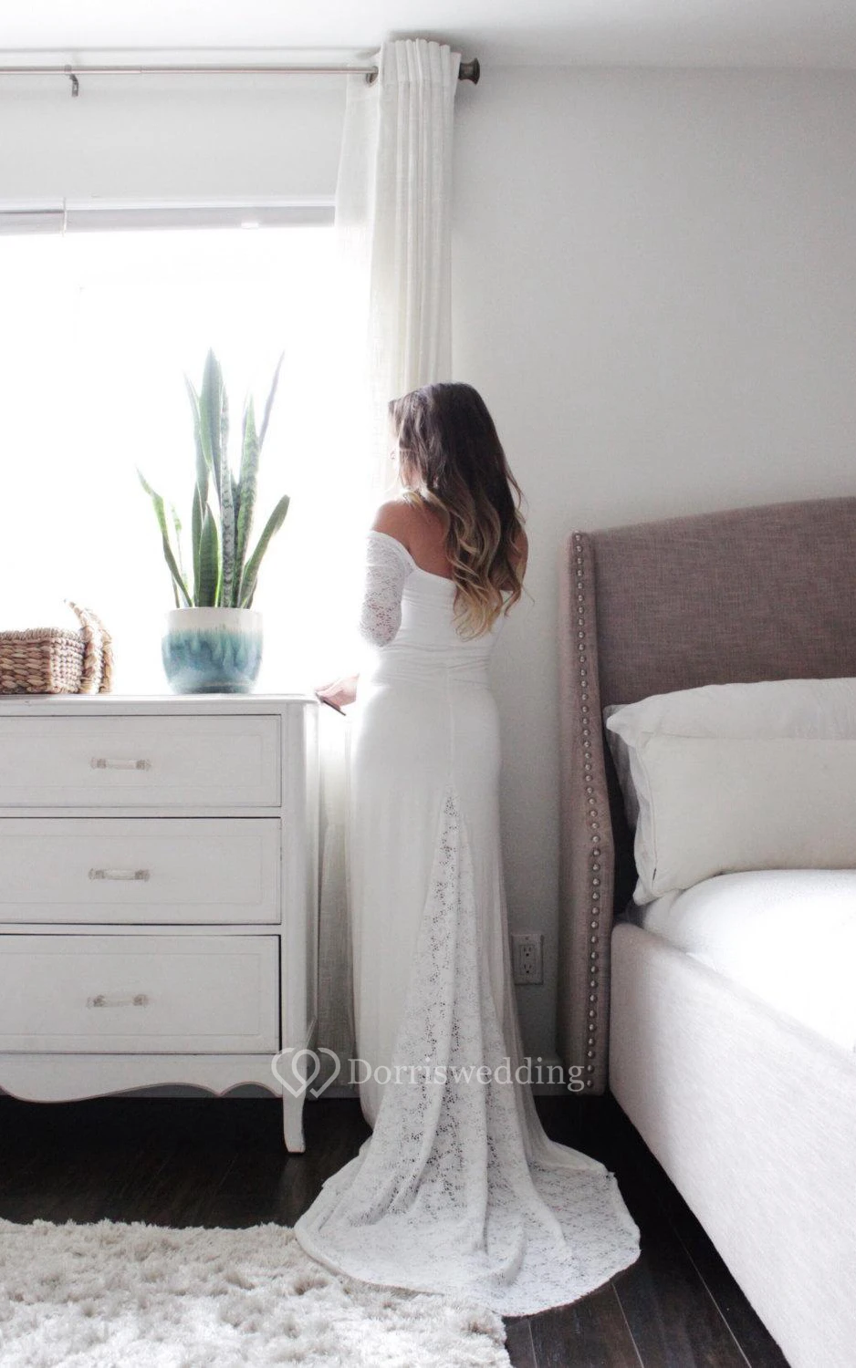 Off-The-Shoulder Long Sleeve Lace Dress With Sweep Train