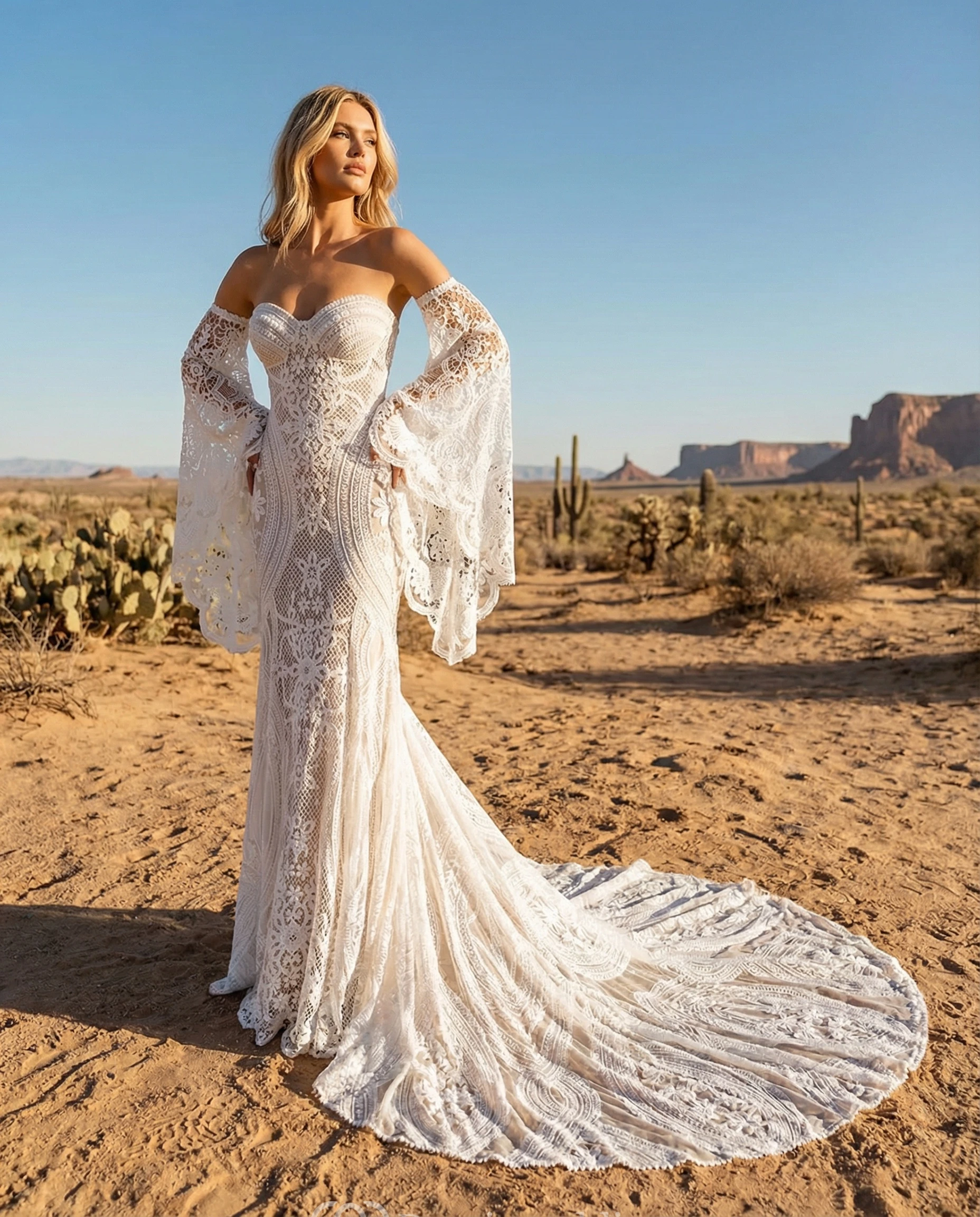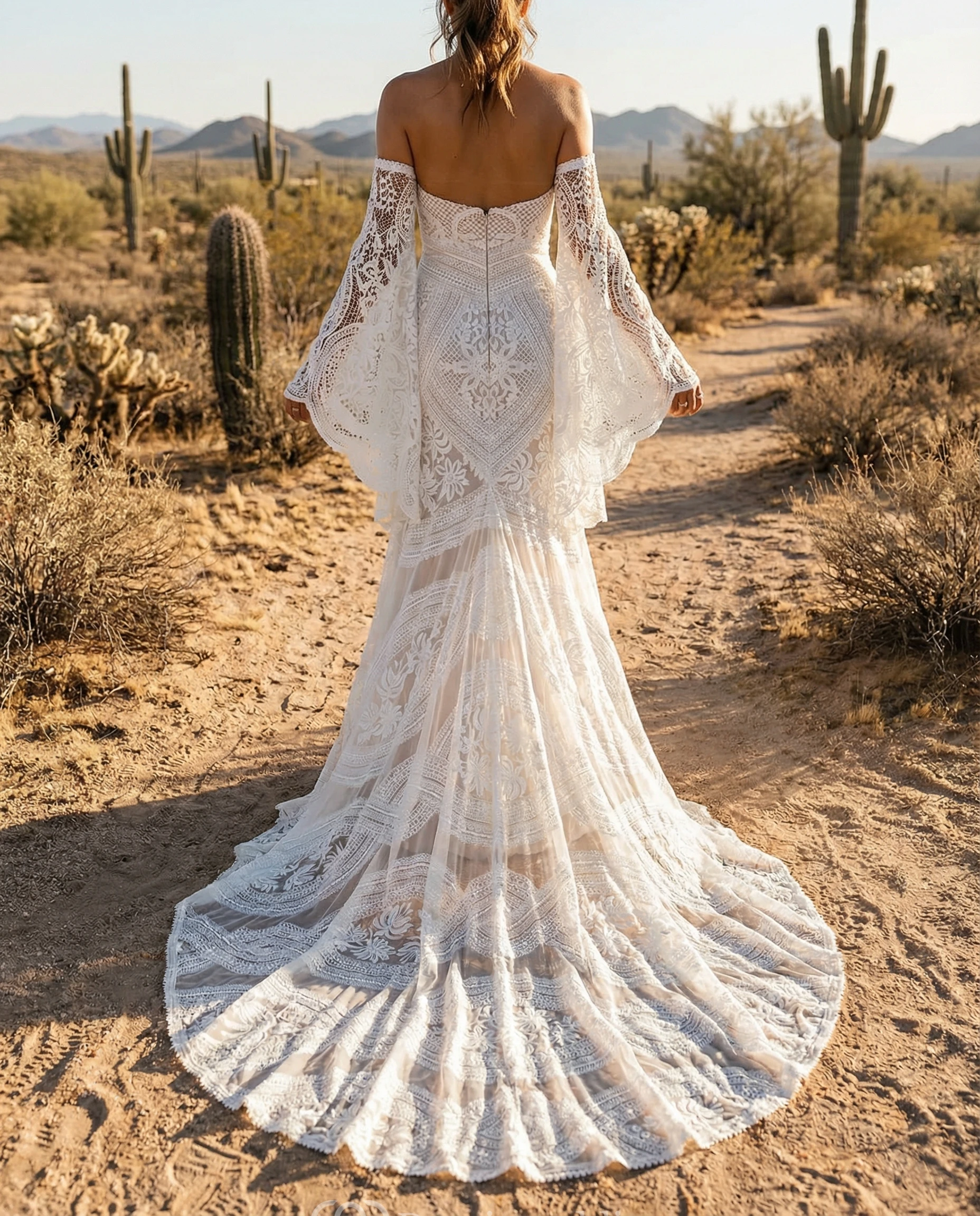 Off-The-Shoulder Long Sleeve Lace Mermaid Dress