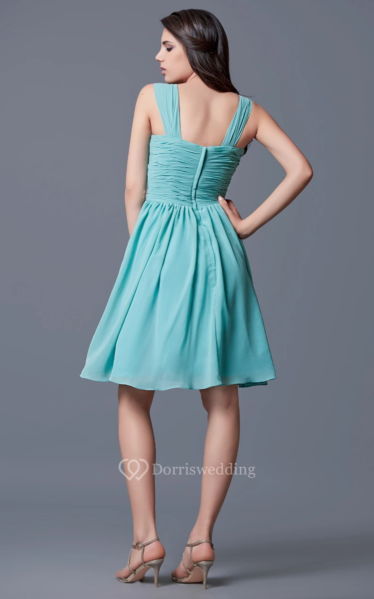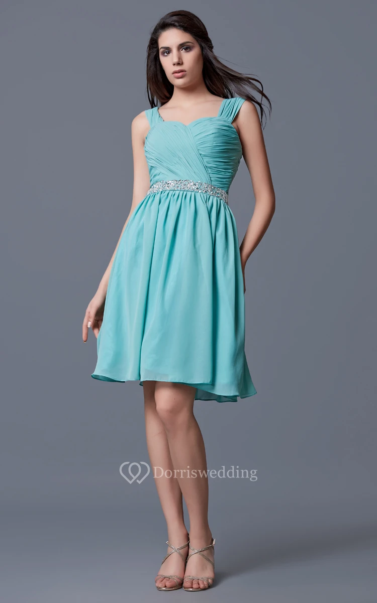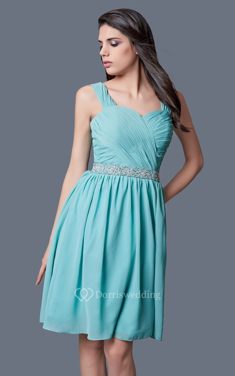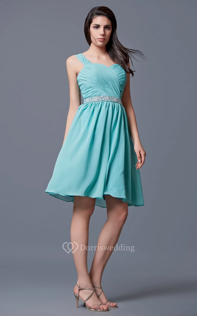 Off the Shoulder Ruched Short A-line Chiffon Dress With Beaded Waist