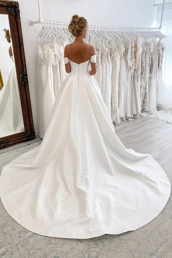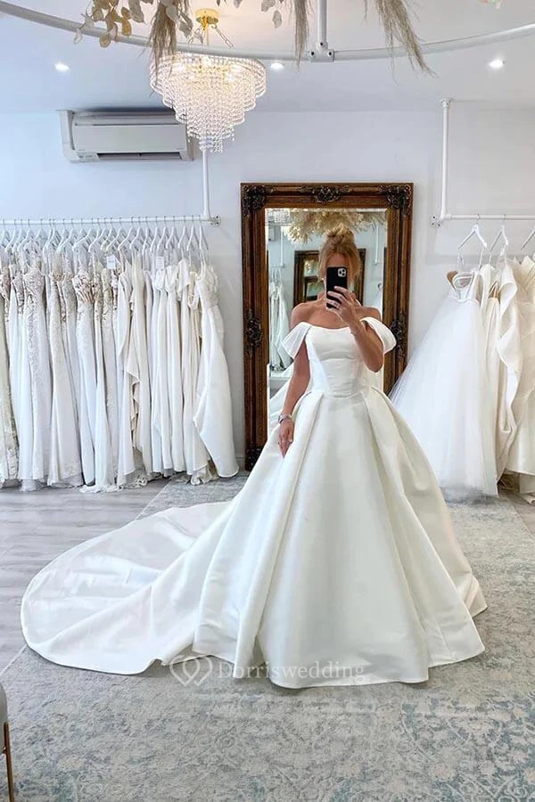 Off-the-shoulder Satin Ball Gown Elegant Wedding Dress
