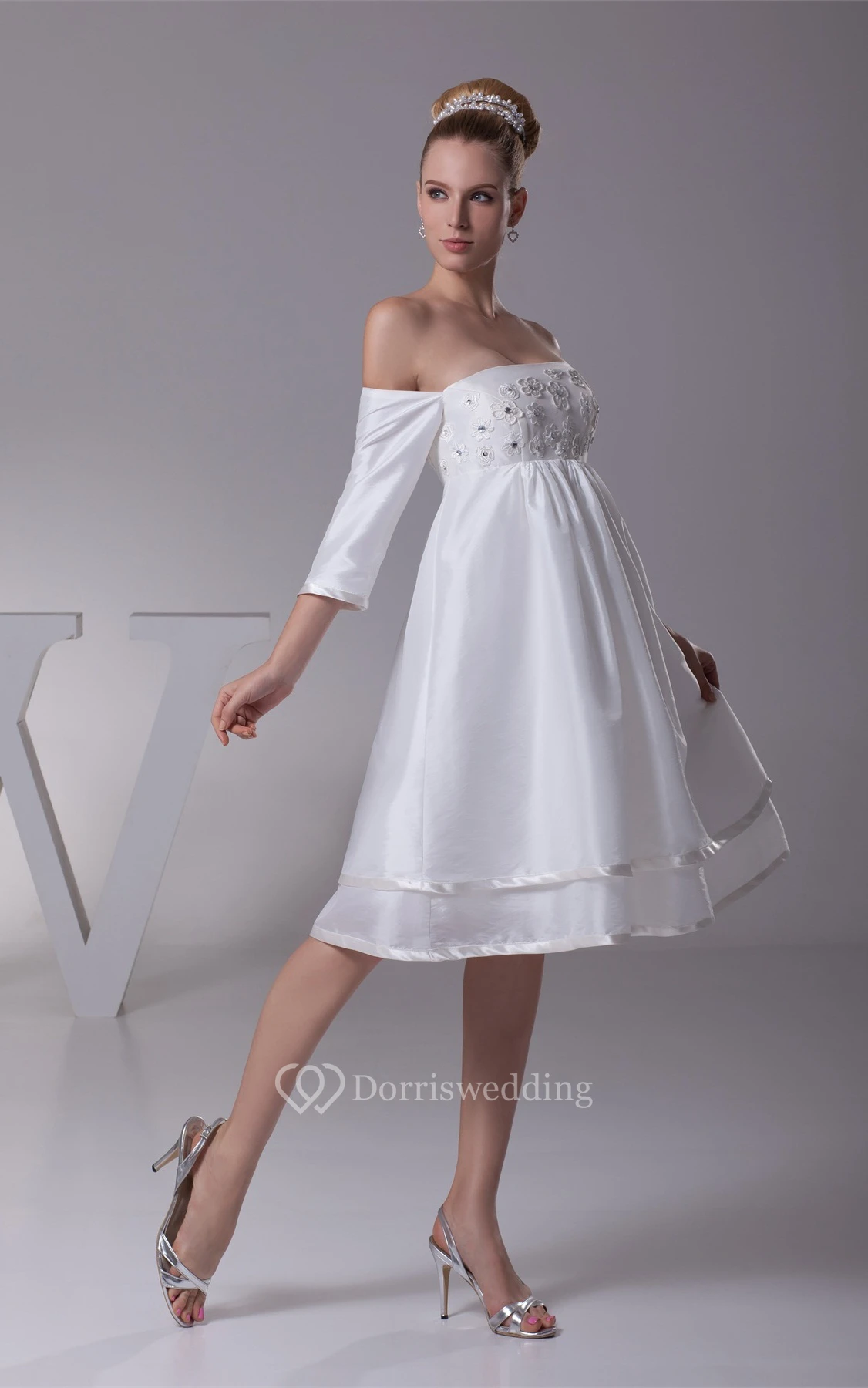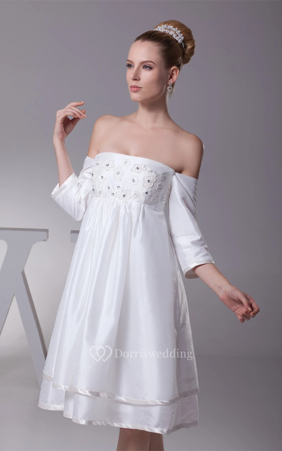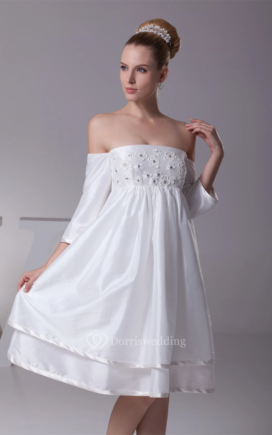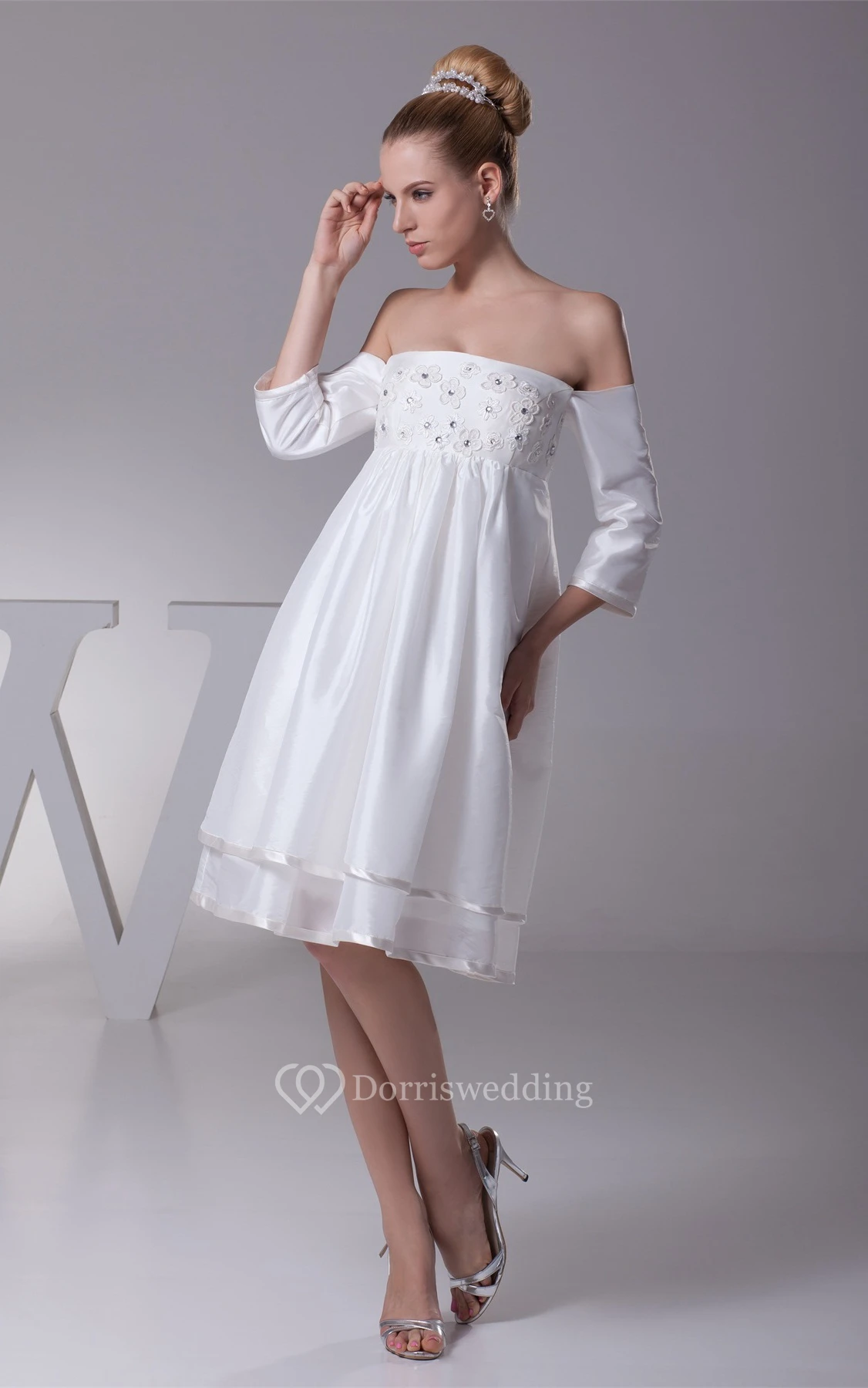 Off-The-Shoulder Short Empire Pleats and Dress With Flower
