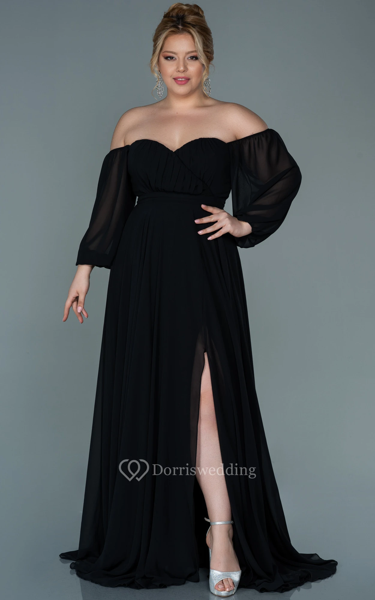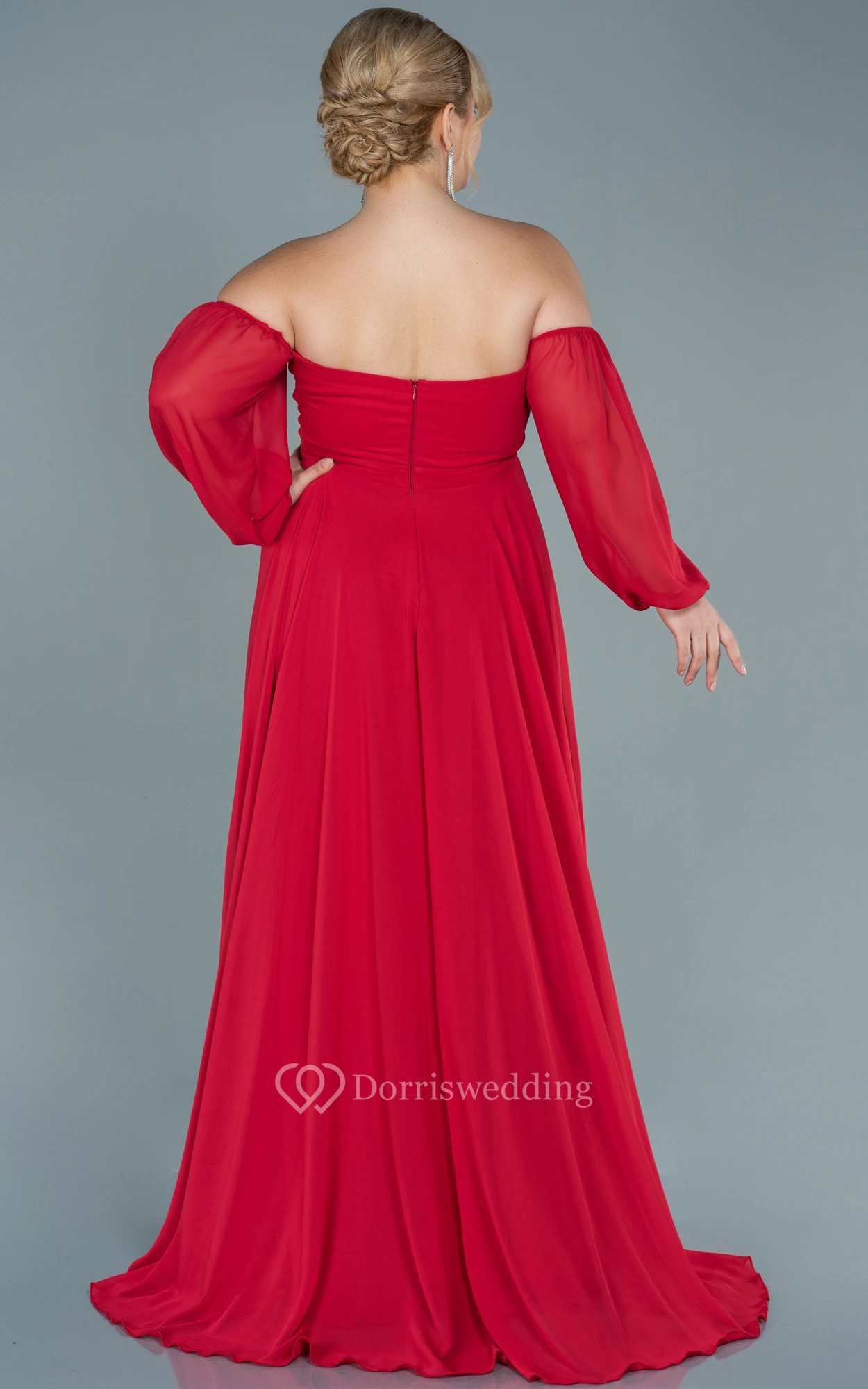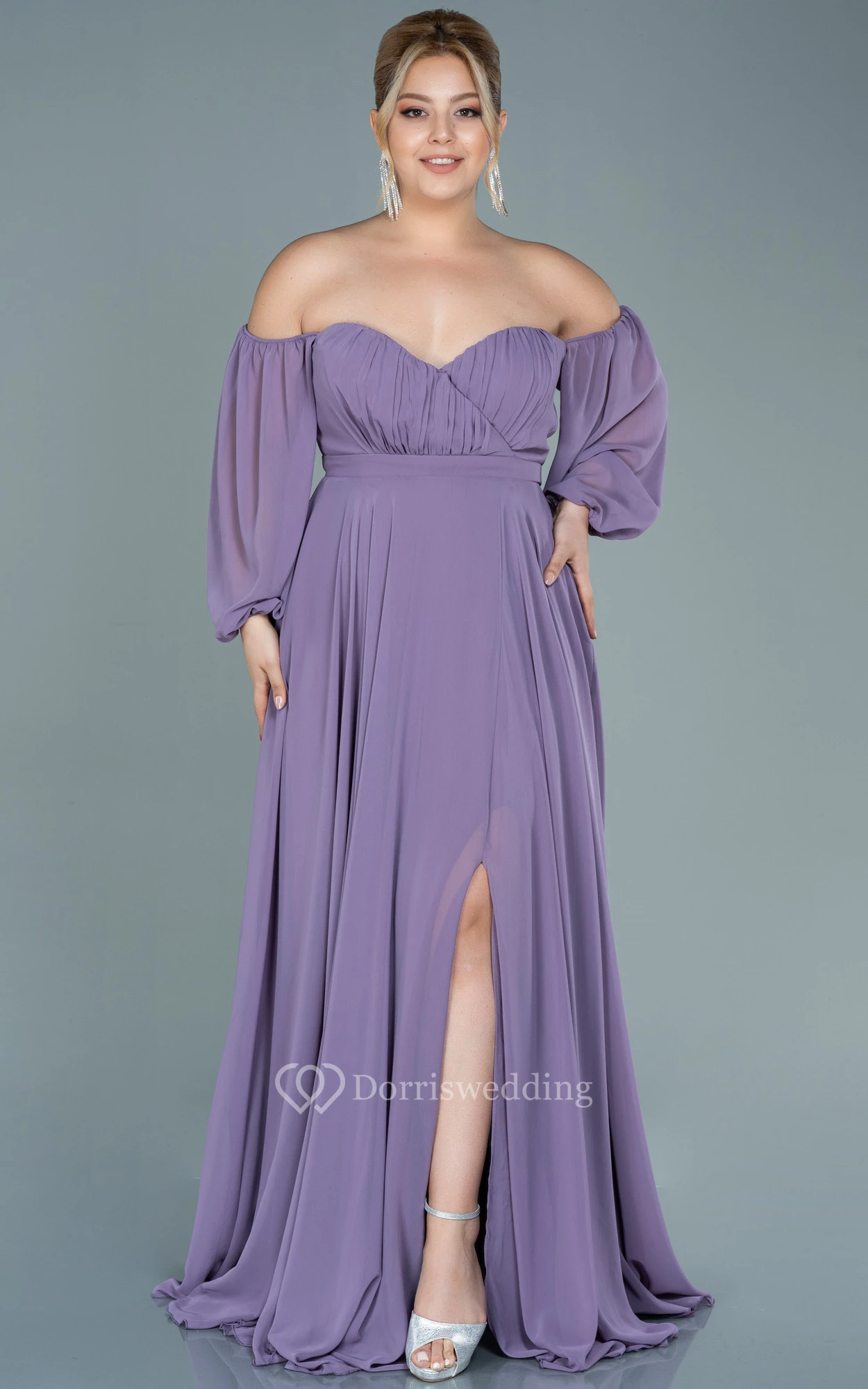 Off-the-shoulder Sweetheart Empire Plus Size Chiffon Front Split Evening Dress