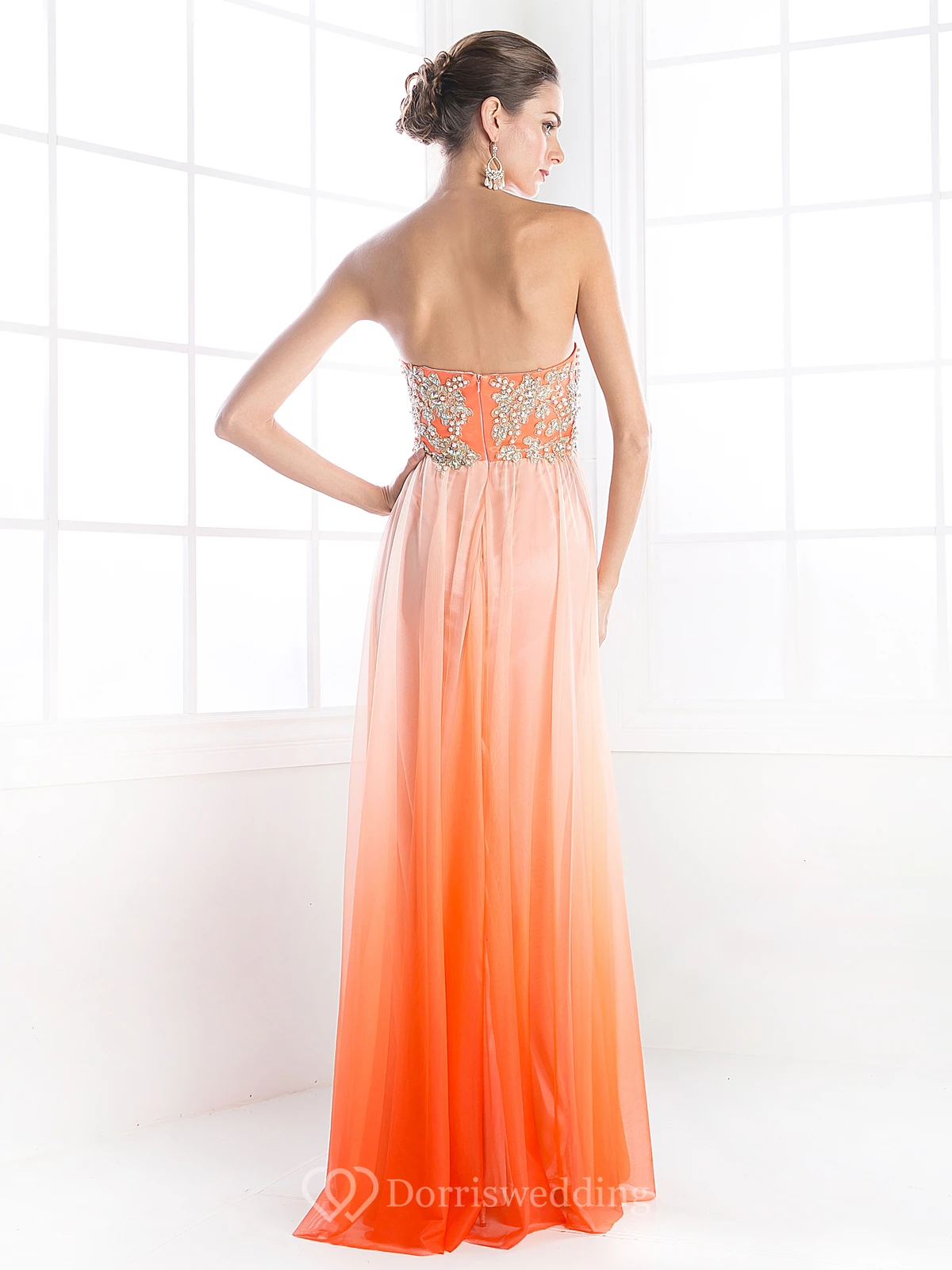 Ombre Sheath Strapless Sleeveless Chiffon Backless Dress With Beading