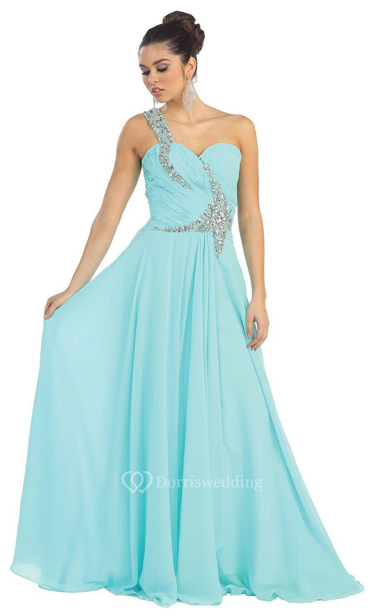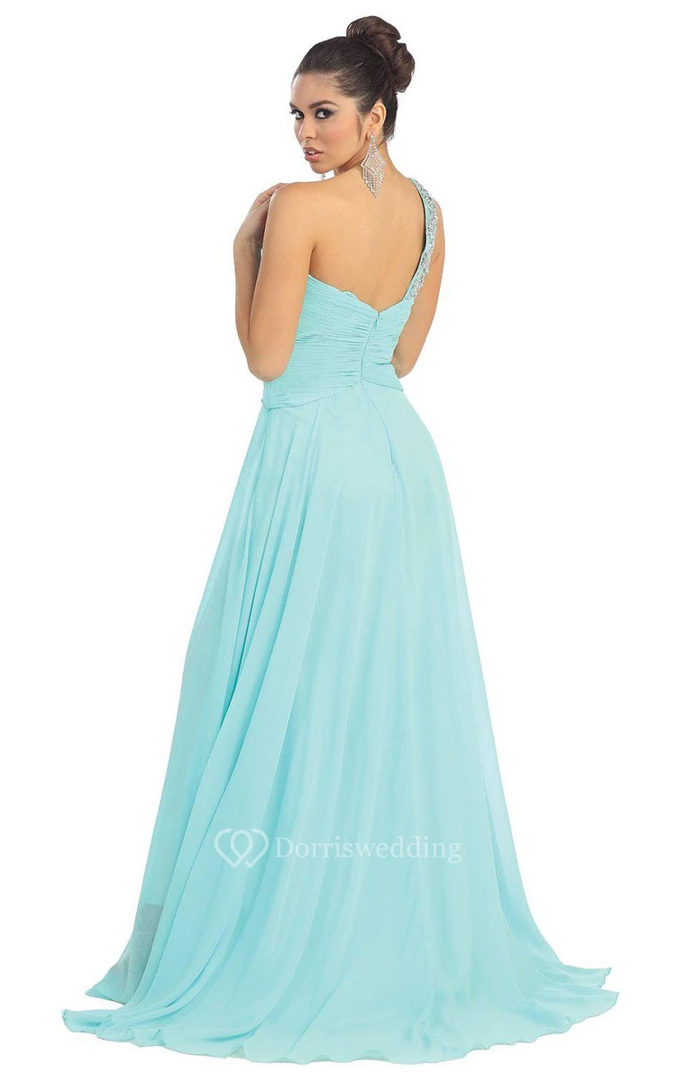One-shoulder A-line Chiffon Dress With Beadings