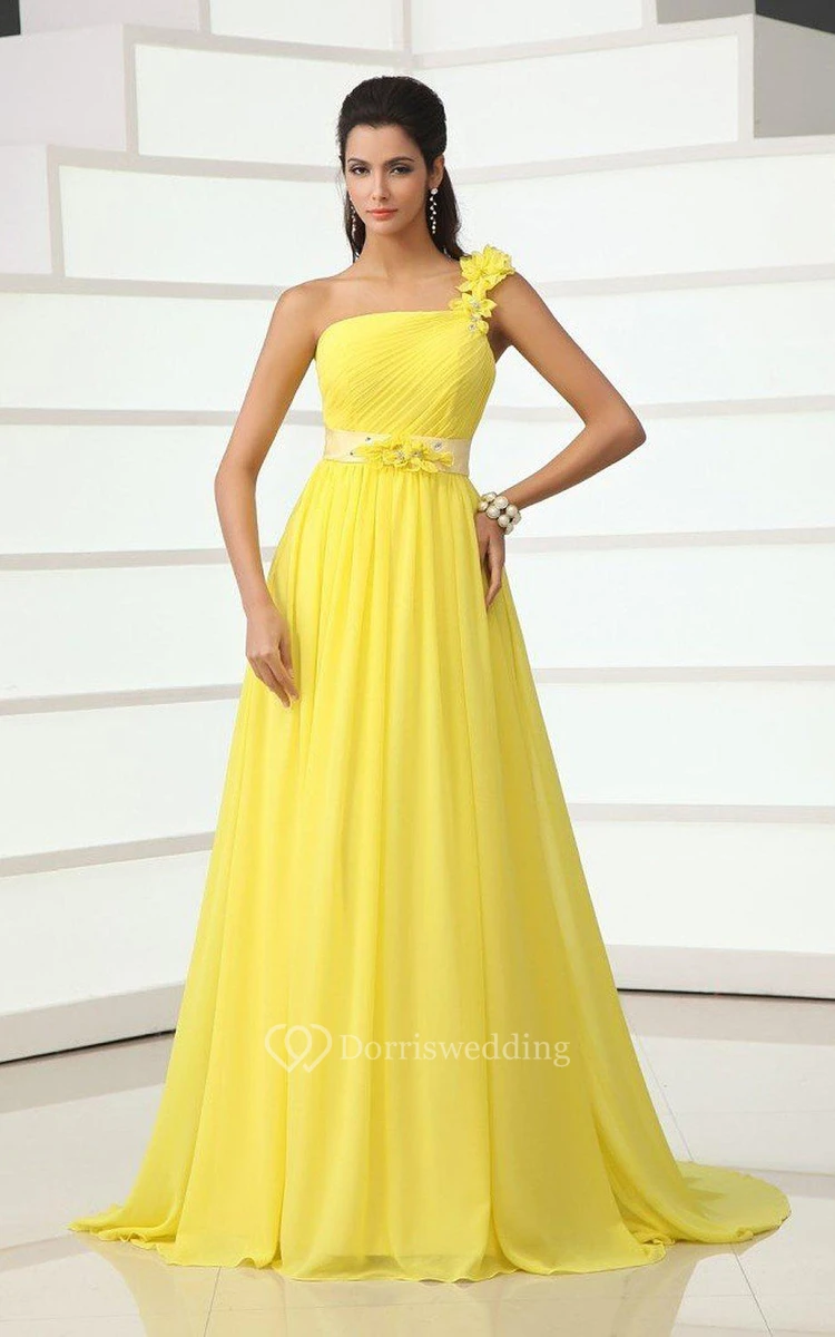 One-shoulder A-line Chiffon Dress With Floral Detail