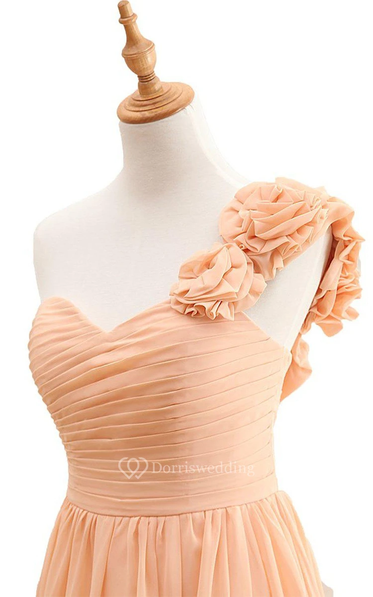 One-shoulder A-line Chiffon Dress With Flowers