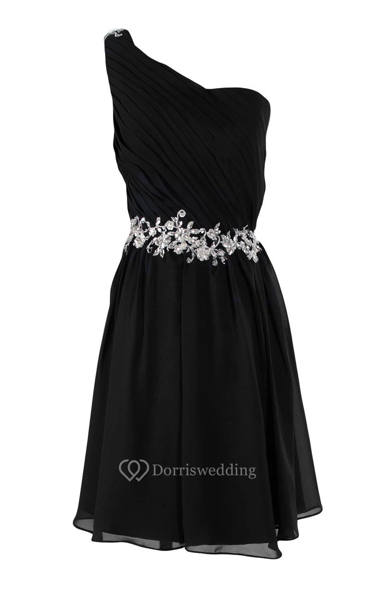 One-shoulder A-line Chiffon Dress With Pleats and Beadings