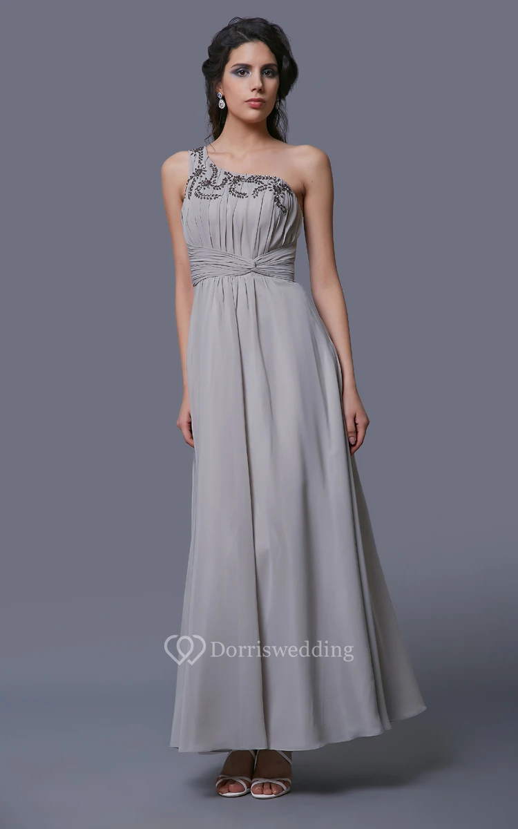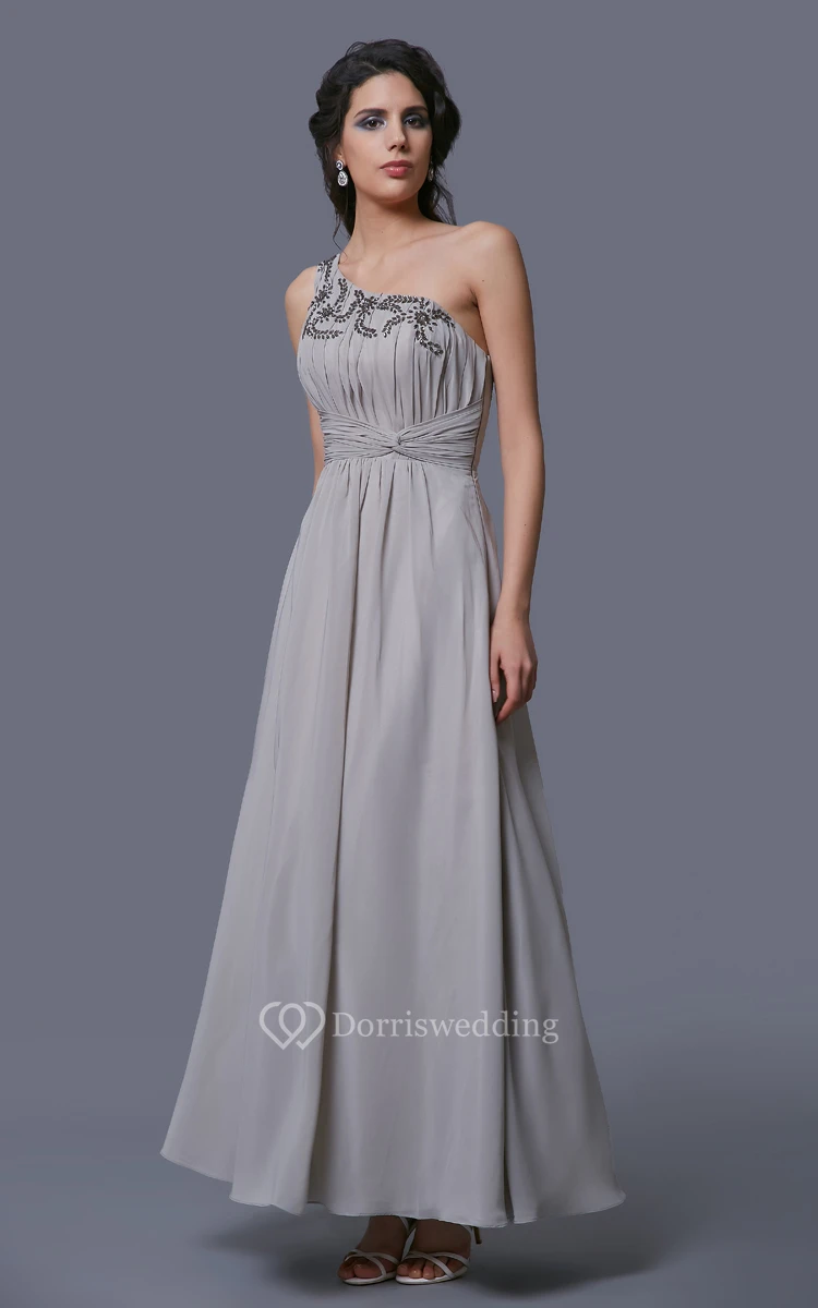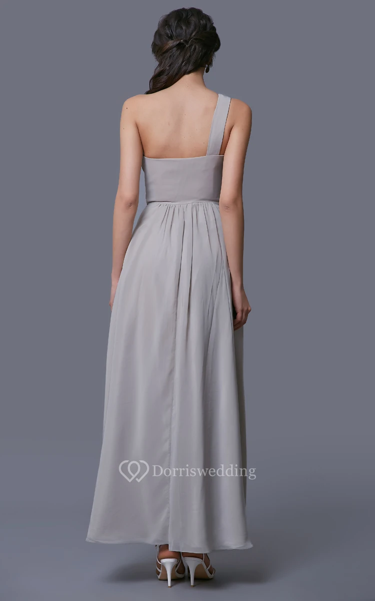 One-Shoulder A-Line Chiffon Dress With Pleats and Rhinestones