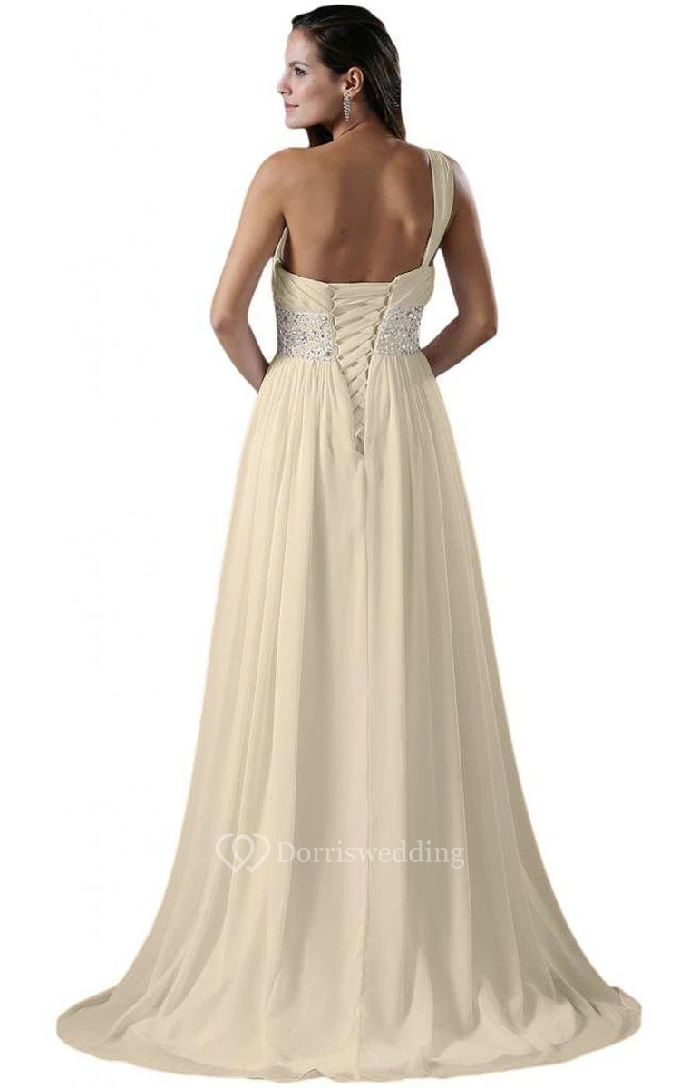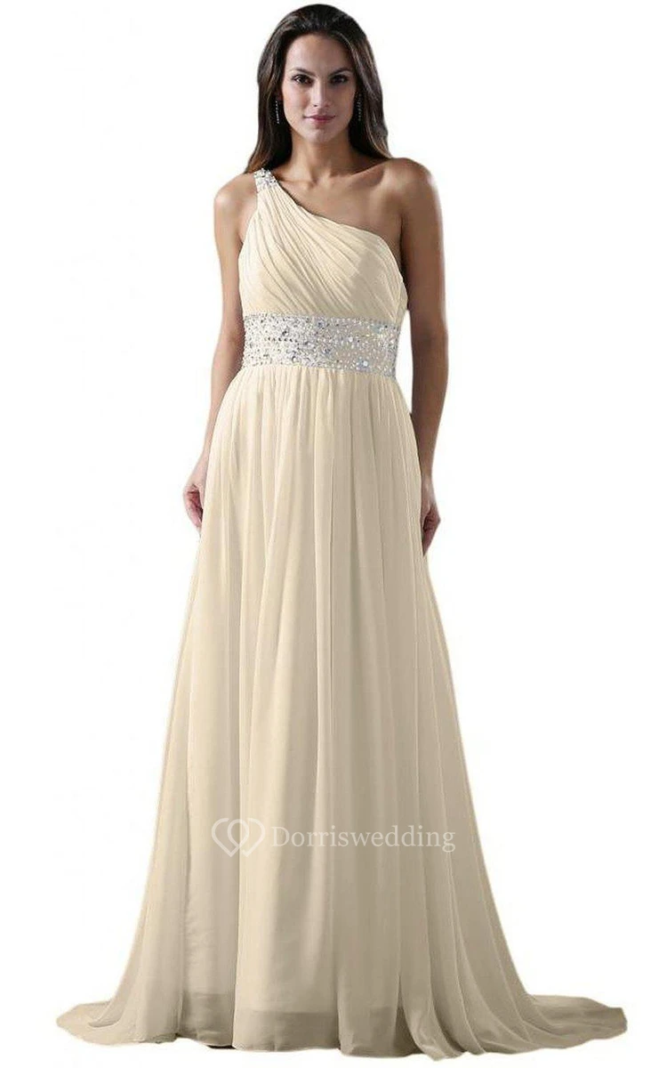 One-shoulder A-line Chiffon Dress With Sequiend Waist