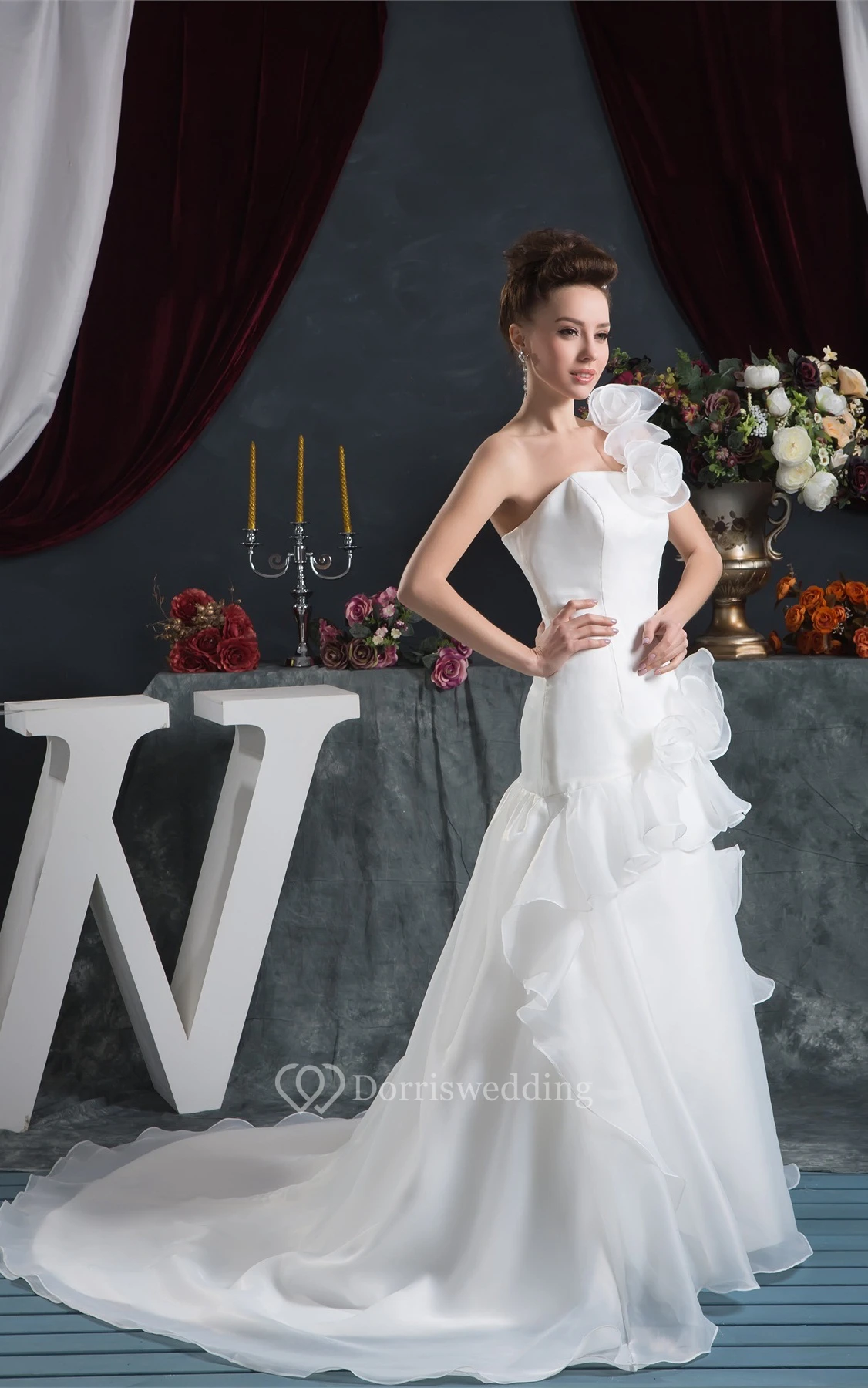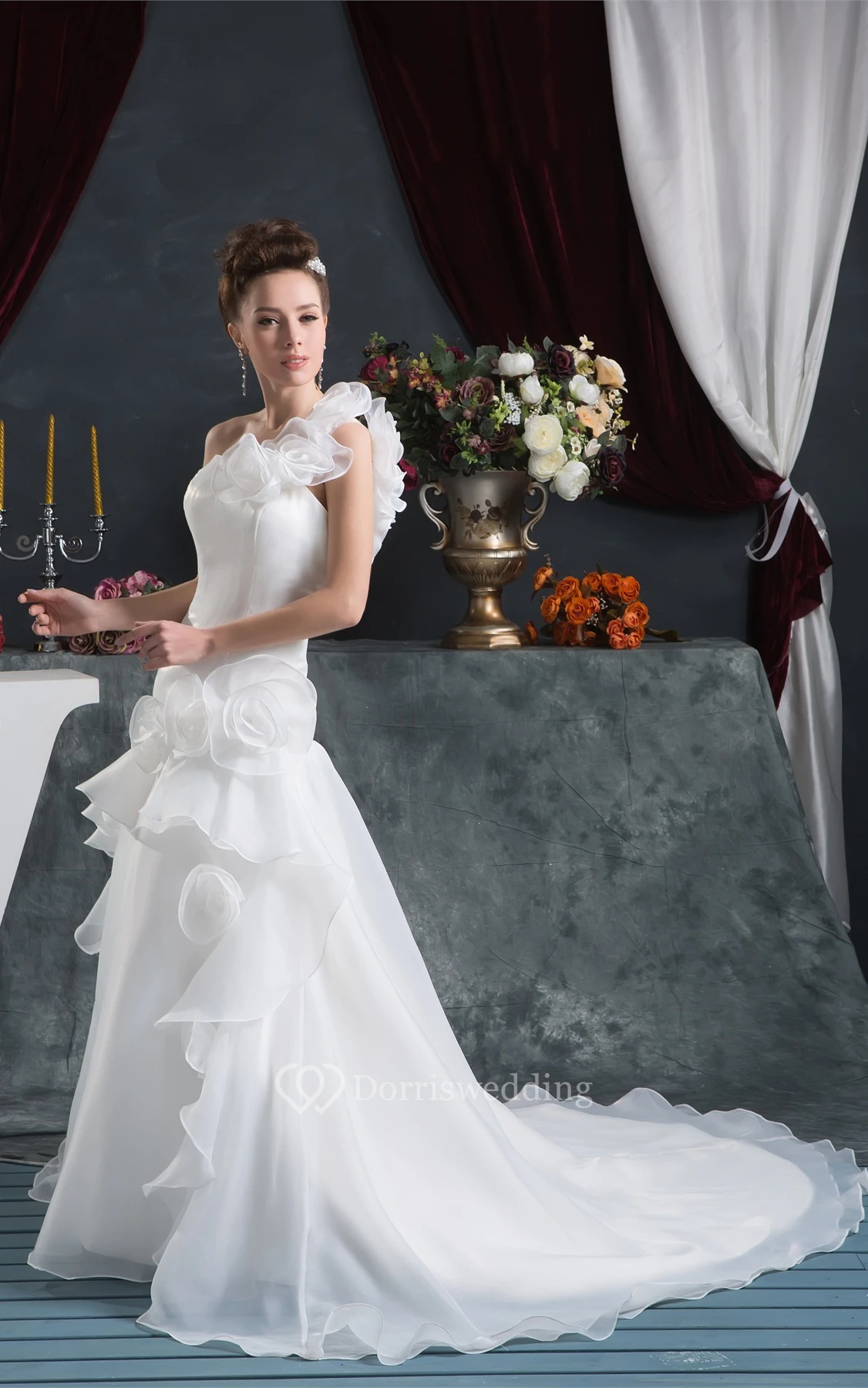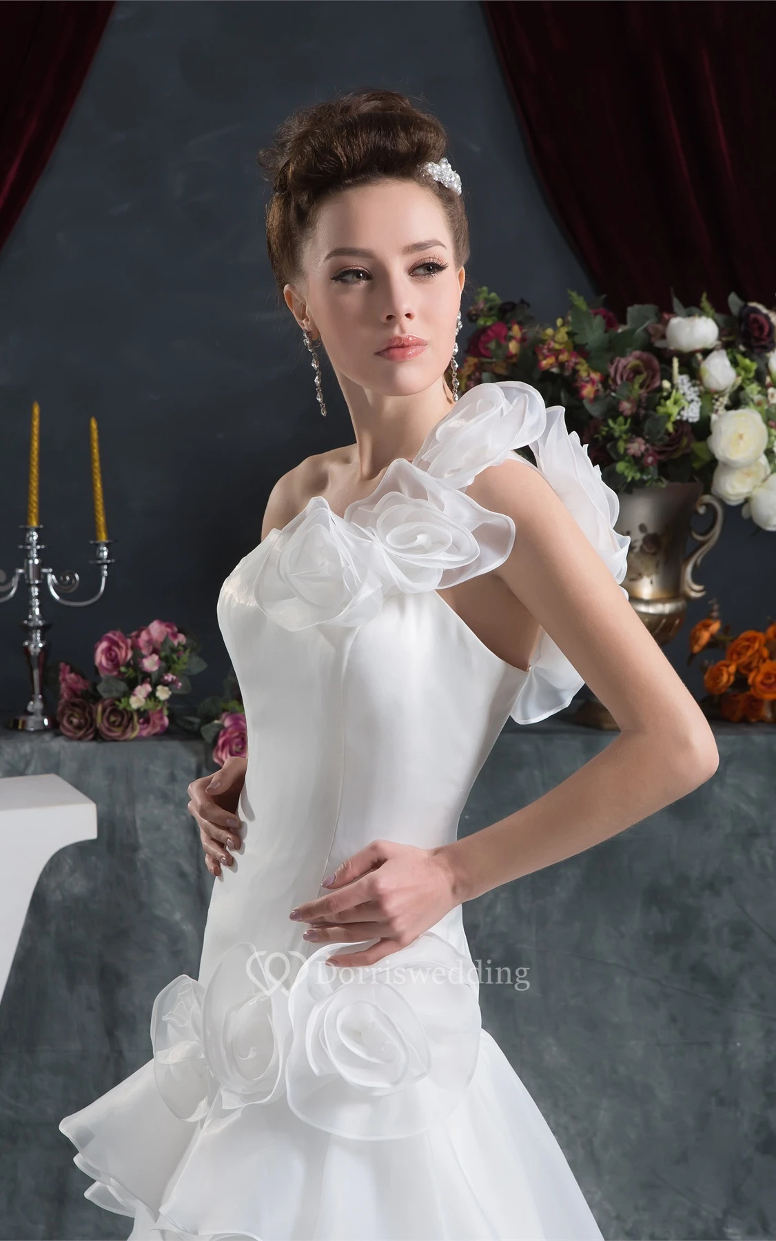 One-Shoulder A-Line Column Flower and Gown With Peplum
