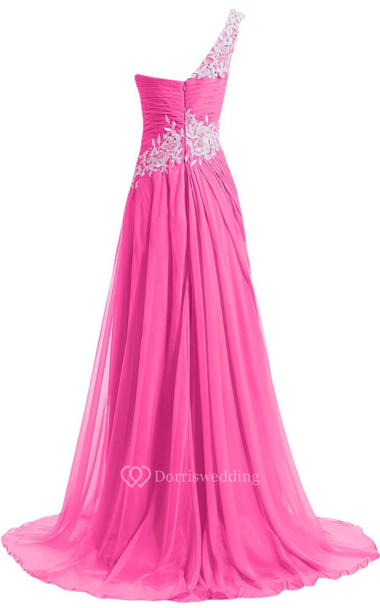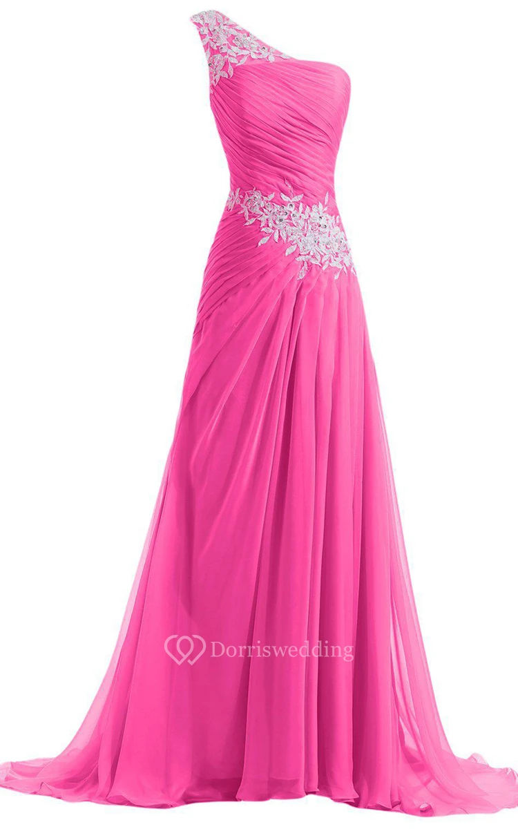 One-shoulder A-line Dress With Beadings and Pleats