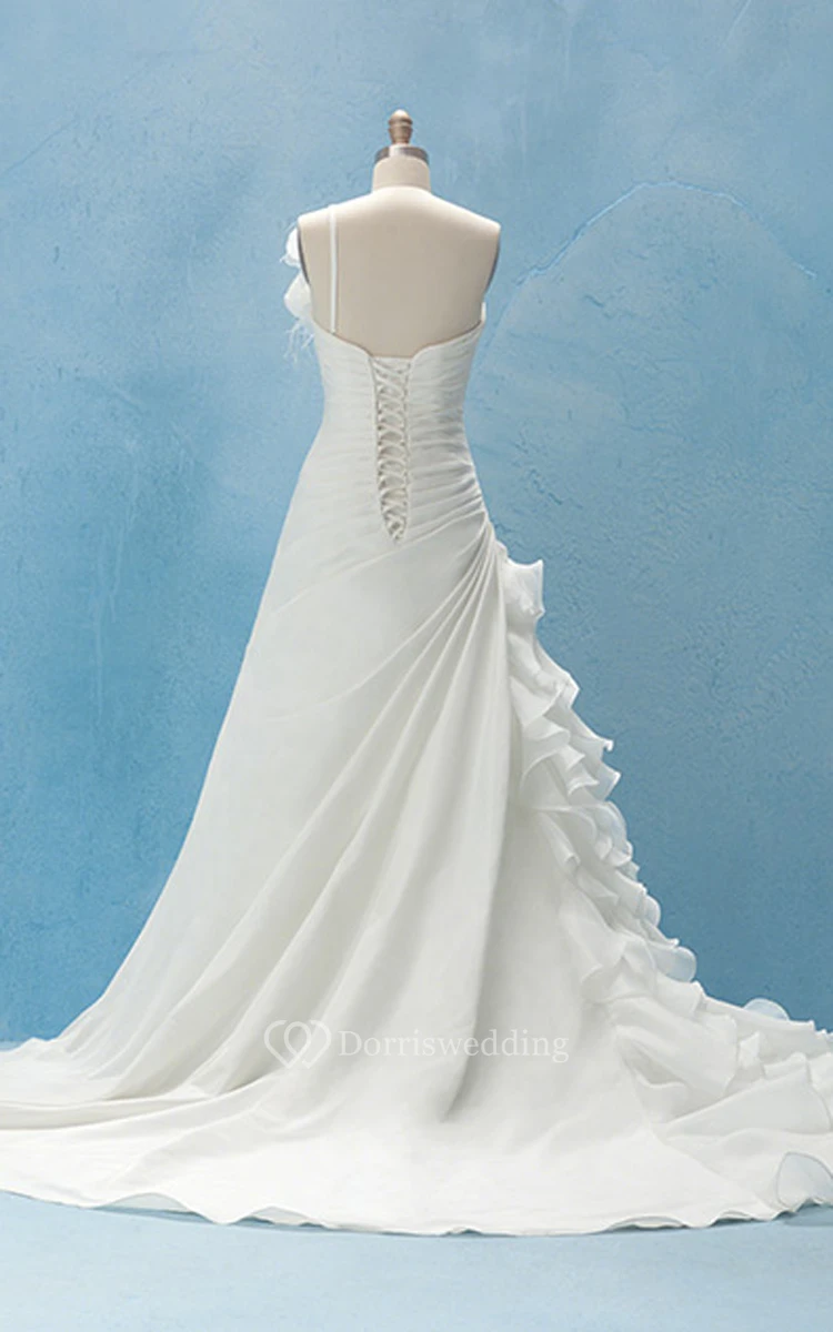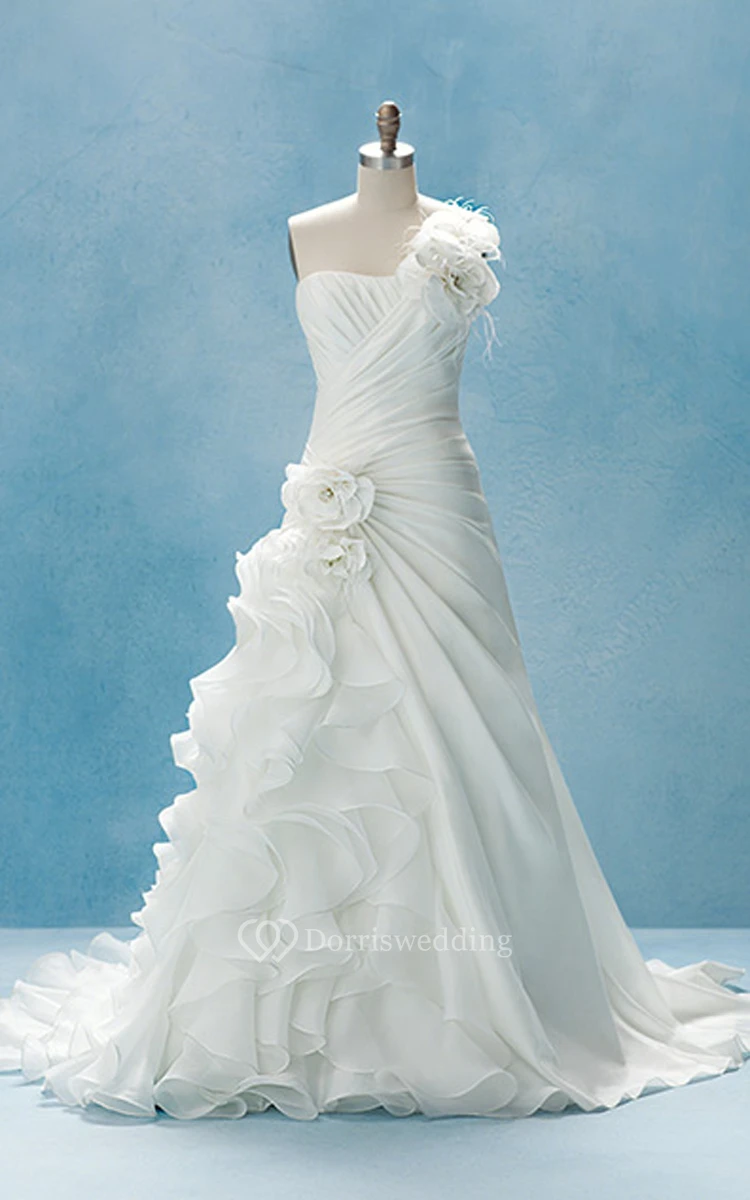 One-Shoulder A-Line Dress With Flower And Ruffles