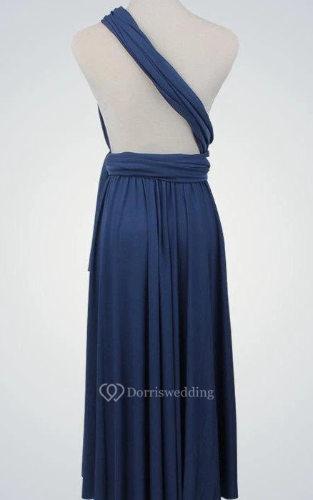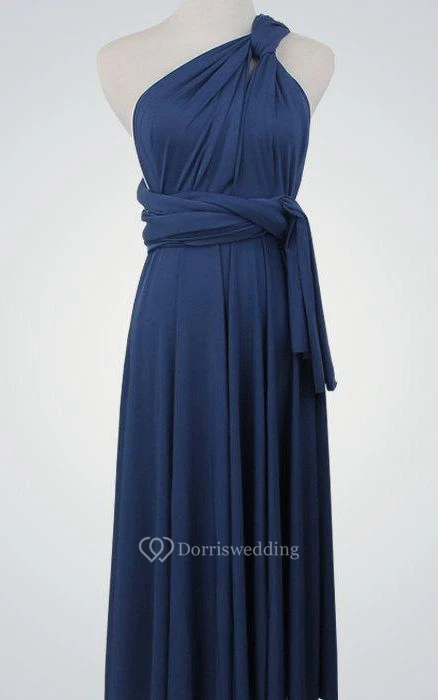 One Shoulder A-line Jersey Long Dress With Sash and Pleats Deep Blue