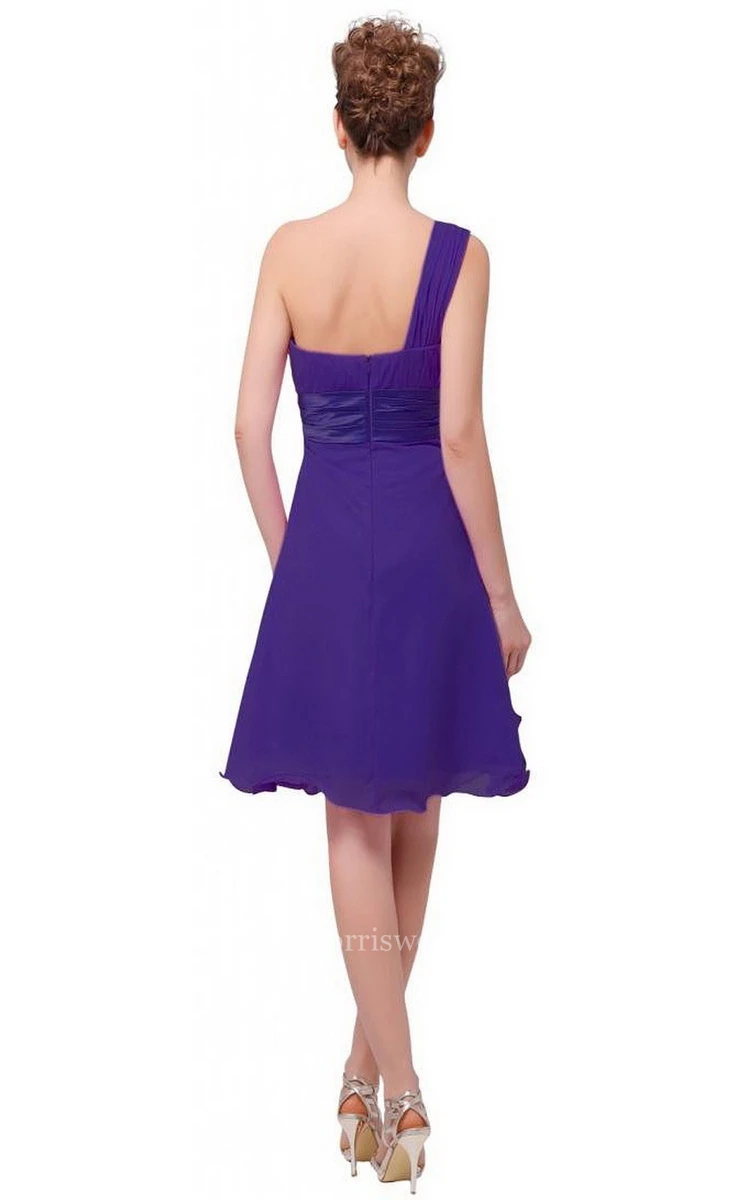 One-shoulder A-line Knee-length Dress With Empire Sash