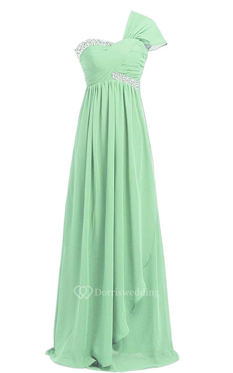 One-shoulder A-line Layered Sequined Chiffon Dress