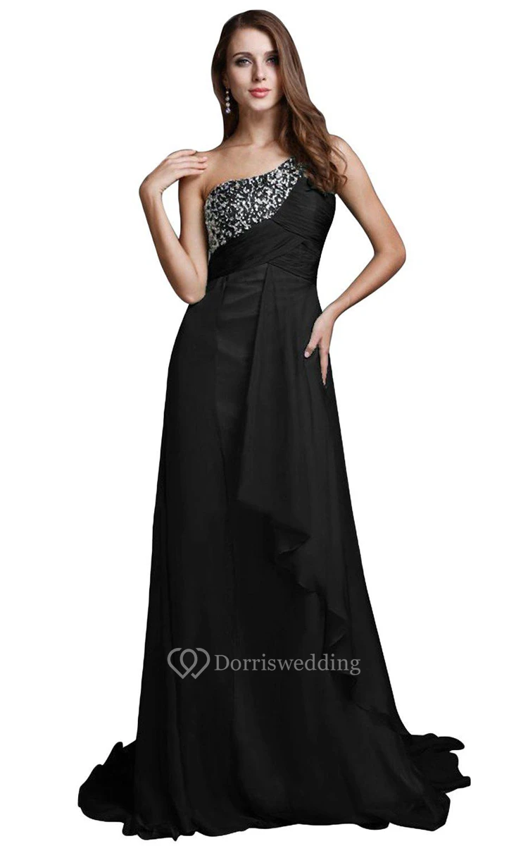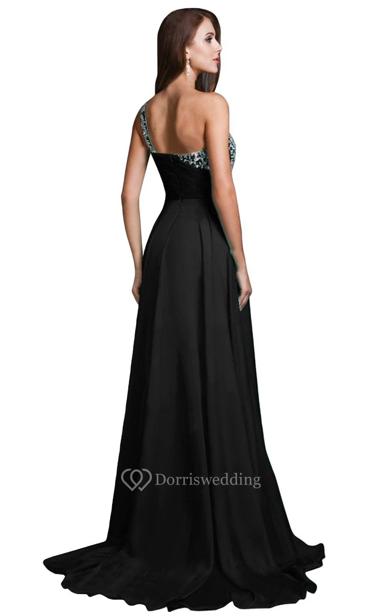 One-shoulder A-line Ruffled Sequined Chiffon Dress