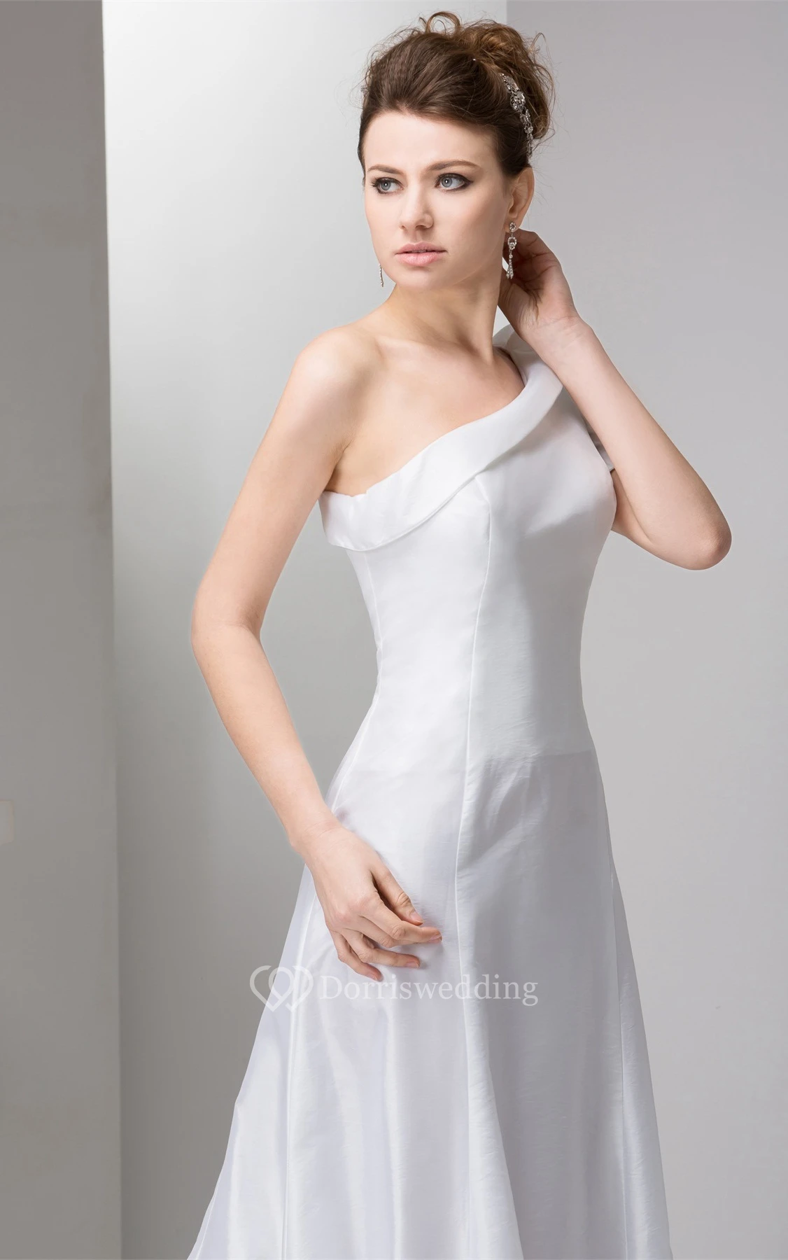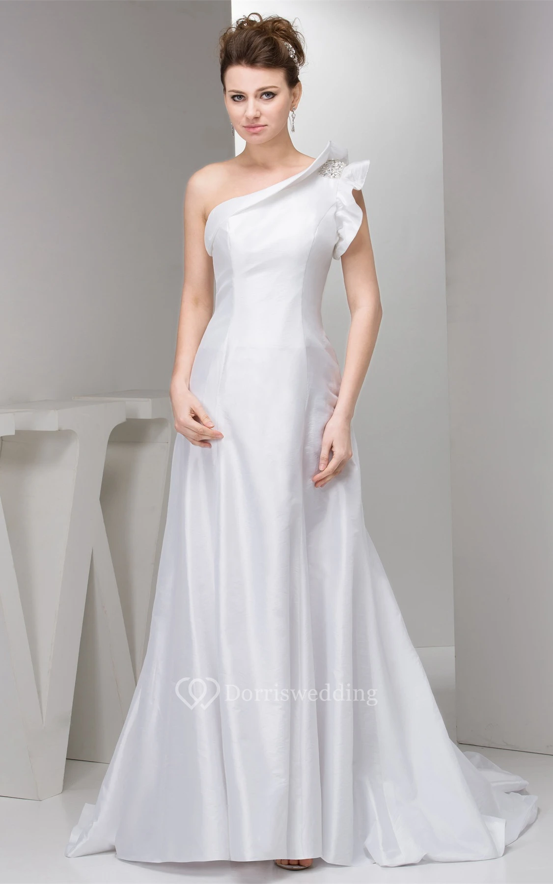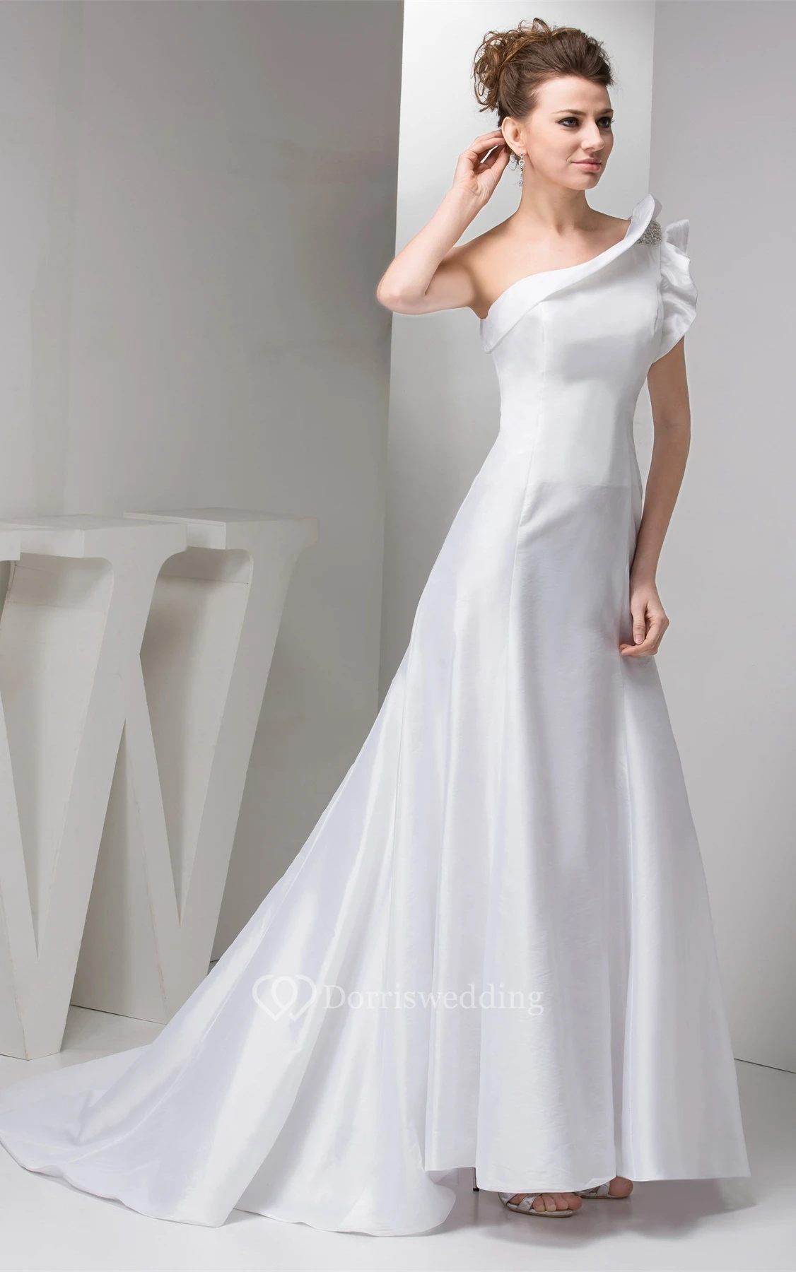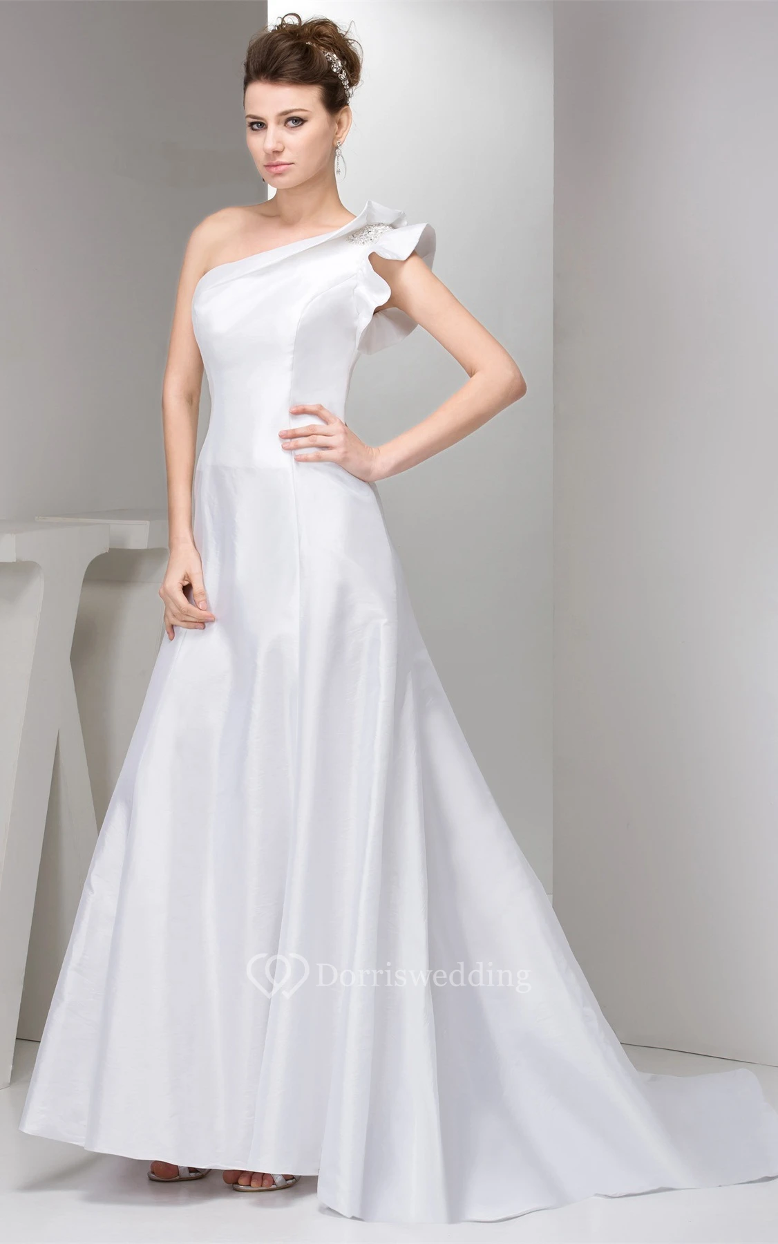One-Shoulder A-Line Satin Gown With Beaded Epaulet