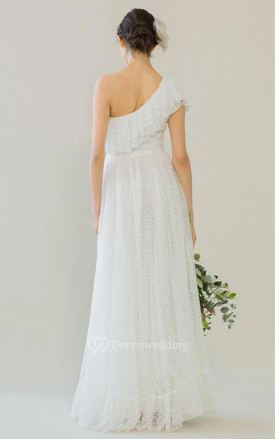 One-Shoulder A-Line Tulle Dress With Ruffles and Cinched Waistband