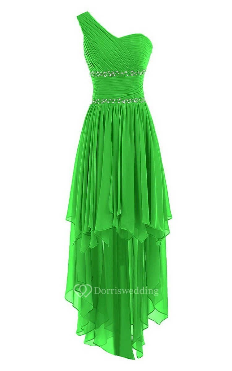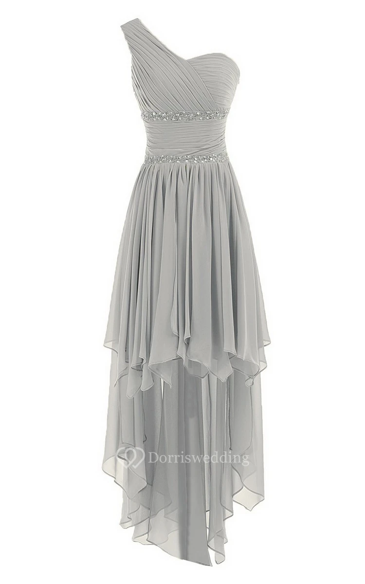 One-shoulder Asymmetrical Chiffon Dress With Sequins