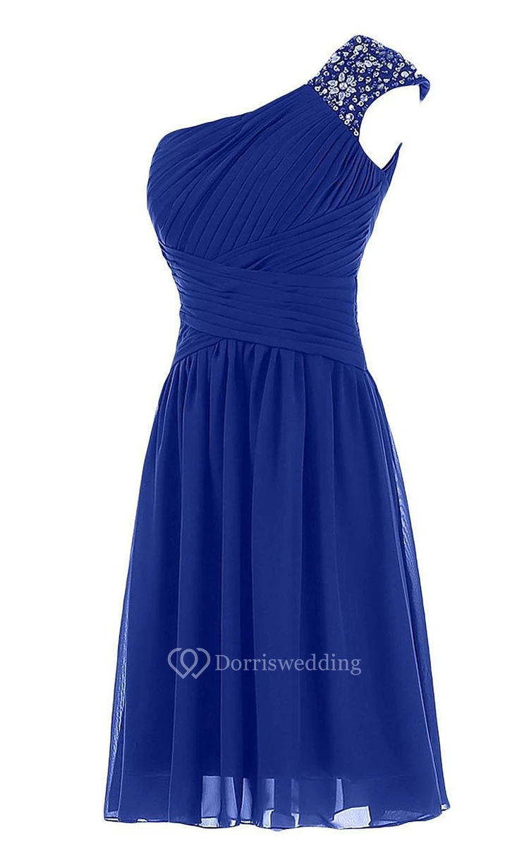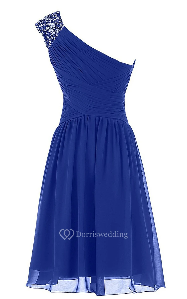 One-shoulder Basque Waist Dress With Crystal Embellishments
