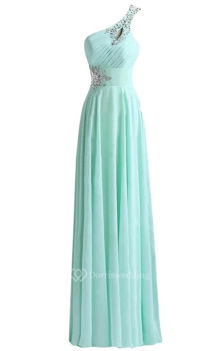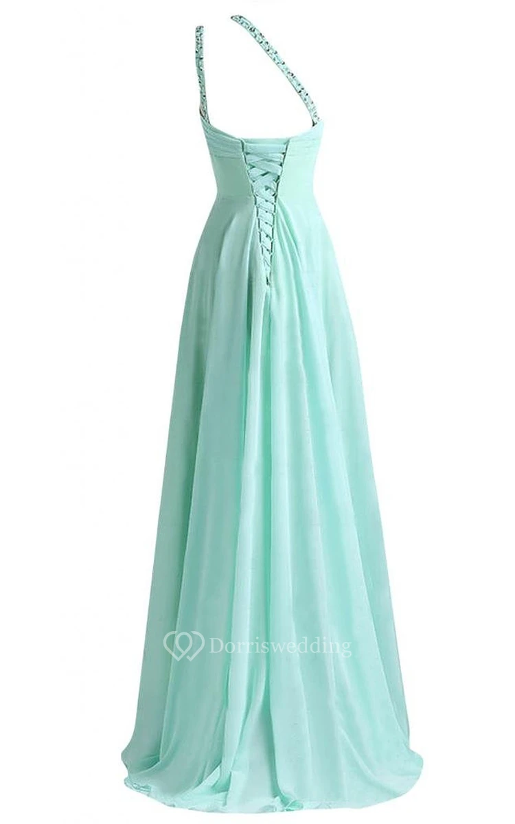 One-shoulder Beaded Chiffon A-line Gown With Lace-up Back
